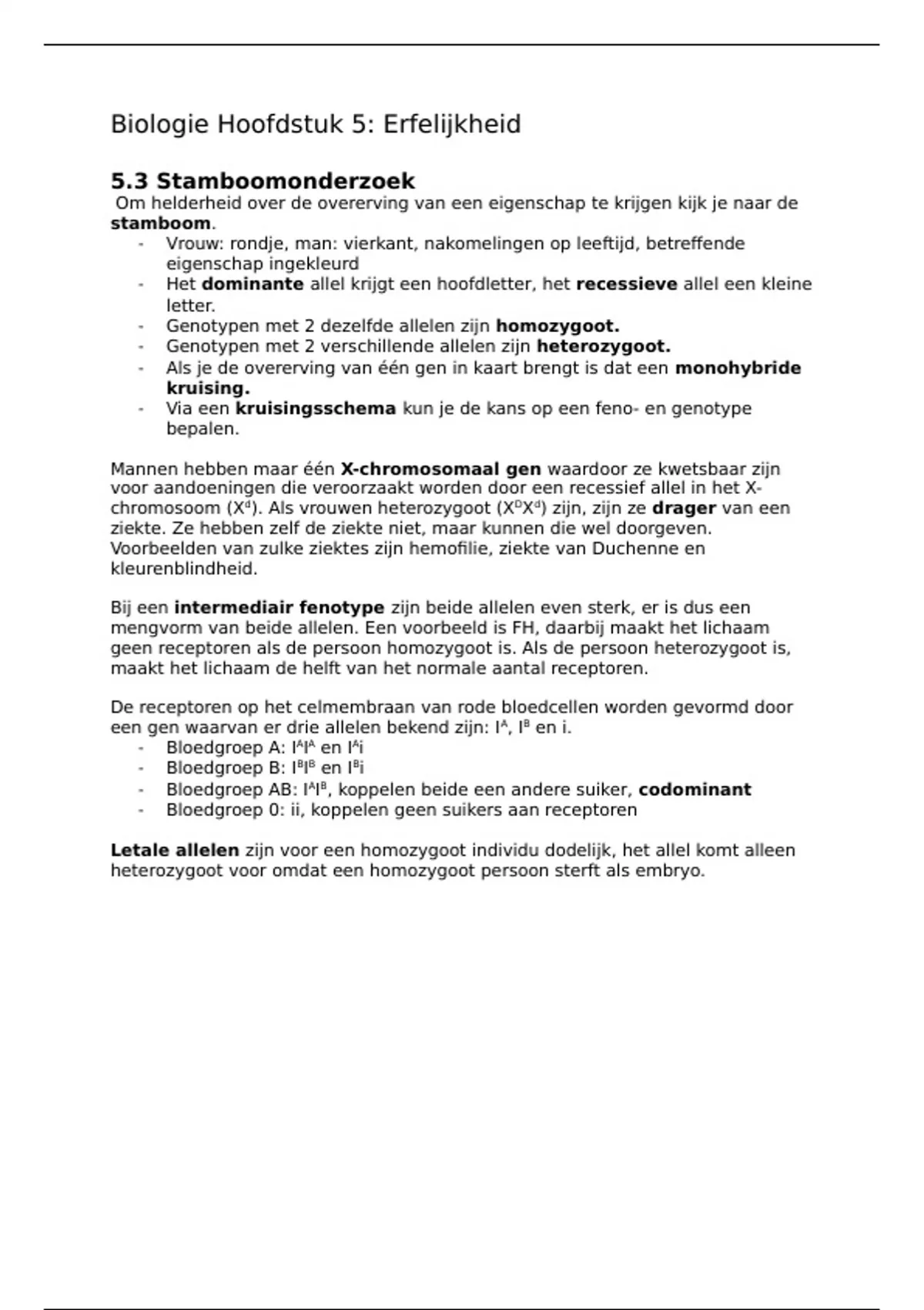Biologie Hoofdstuk 5: Erfelijkheid