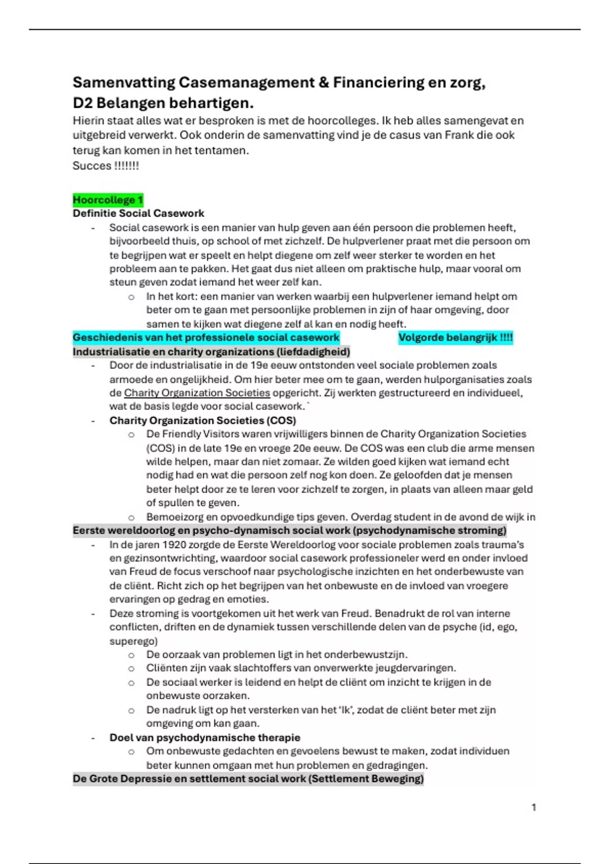 Hierin staat alles wat er besproken is met de hoorcolleges. Ik heb alles samengevat en