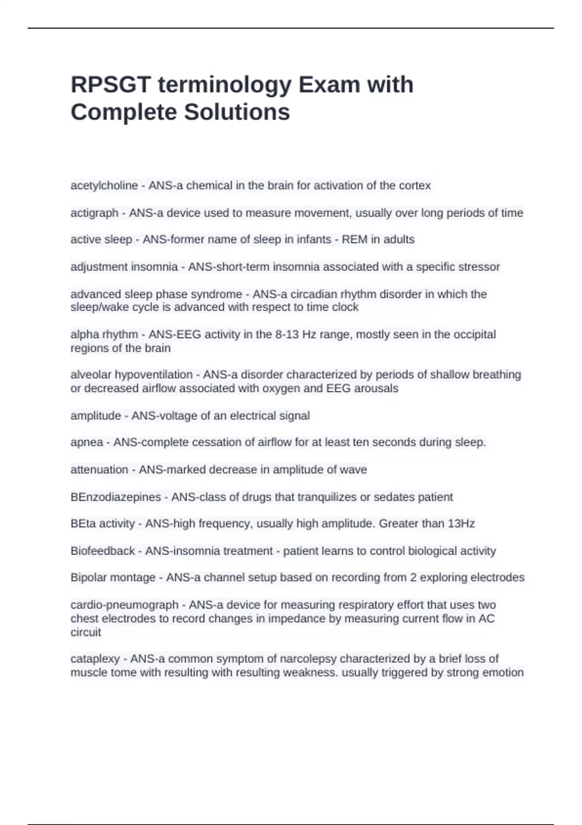 RPSGT terminology Exam with