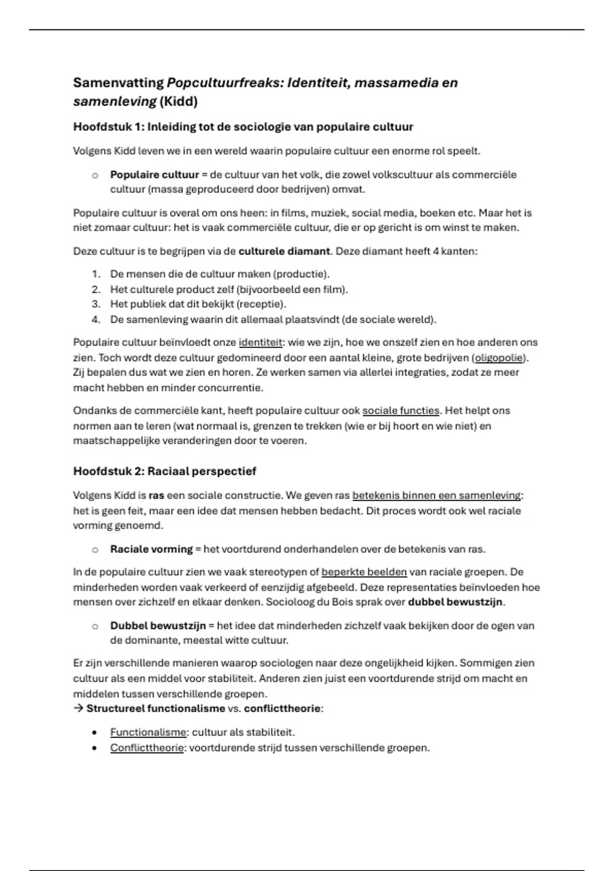Samenvatting Popcultuurfreaks: Identiteit, massamedia en