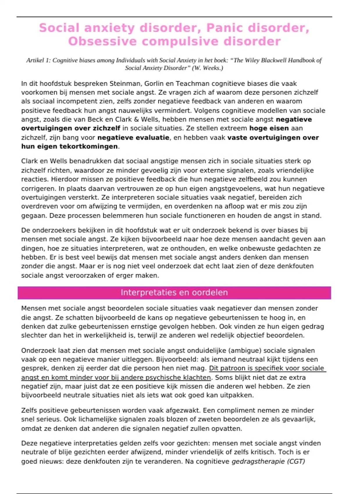 In dit hoofdstuk bespreken Steinman, Gorlin en Teachman cognitieve biases die vaak