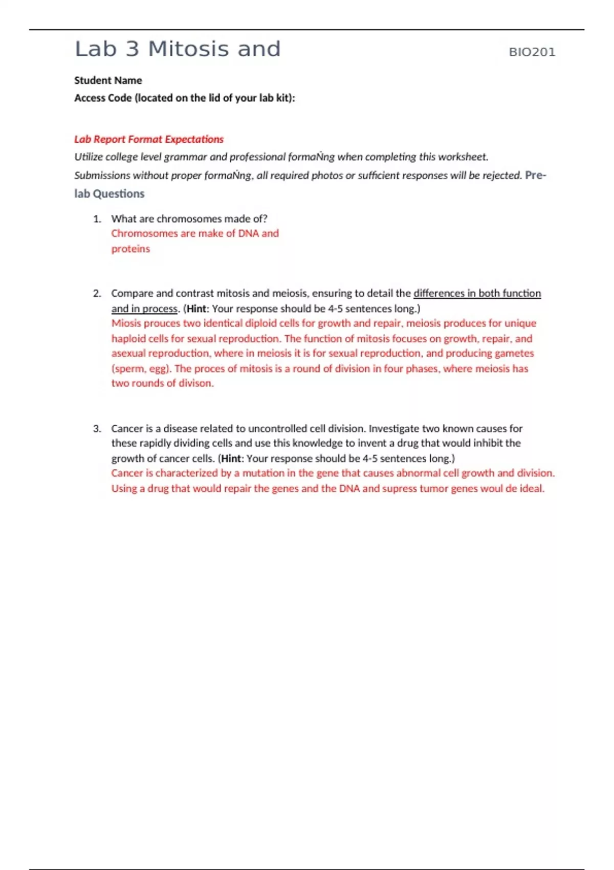 ,Lab 3 Mitosis and BIO201