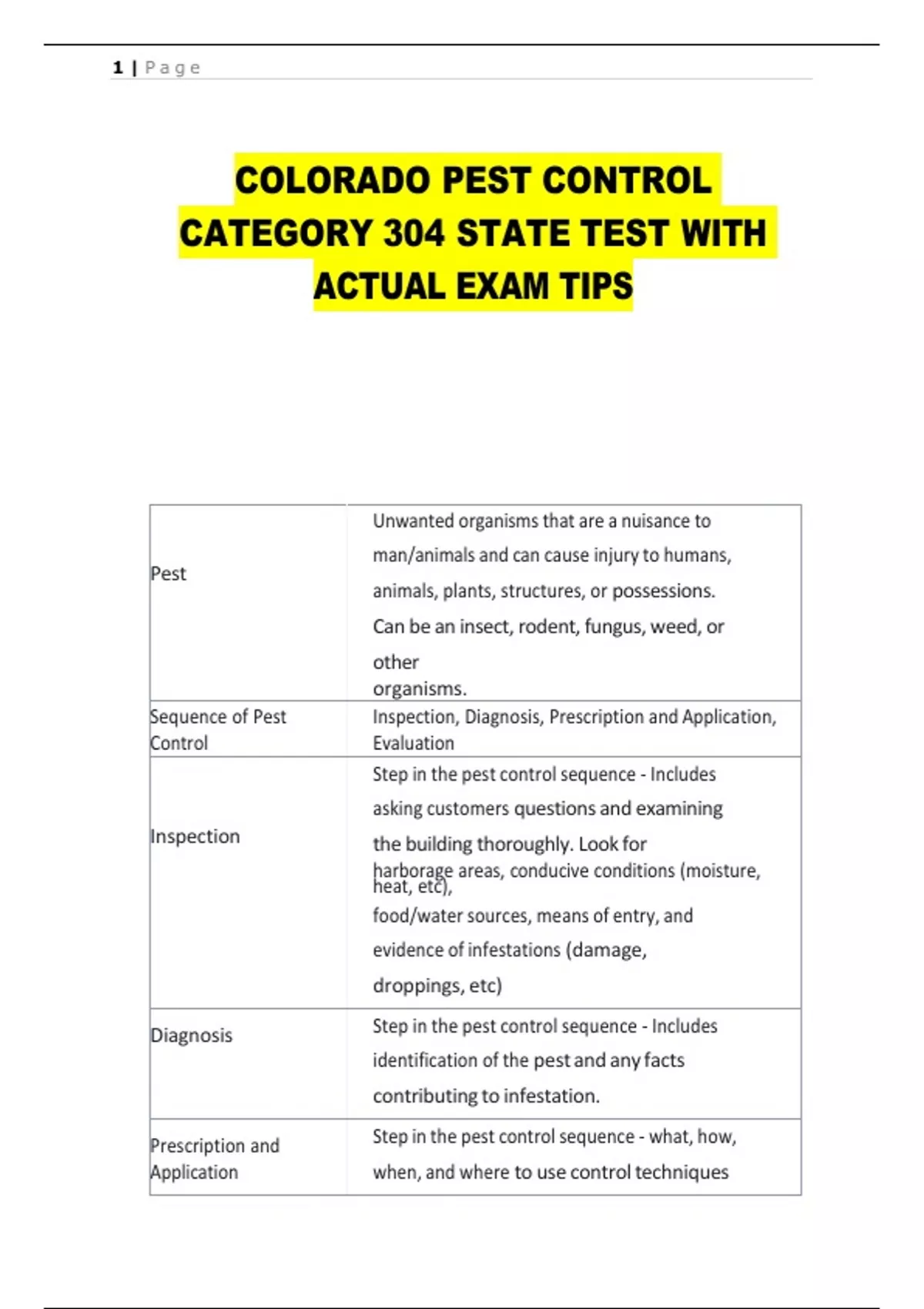Prescription and Step in the pest control sequence - what, how,