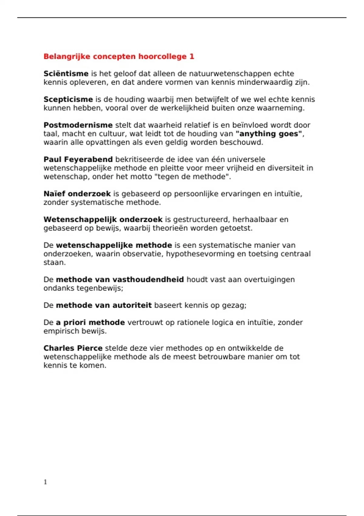 Alle concepten makkelijk opgeschreven om makkelijk de concepten uit je hoofd te kunnen leren voor het gesloten boek tentamen.