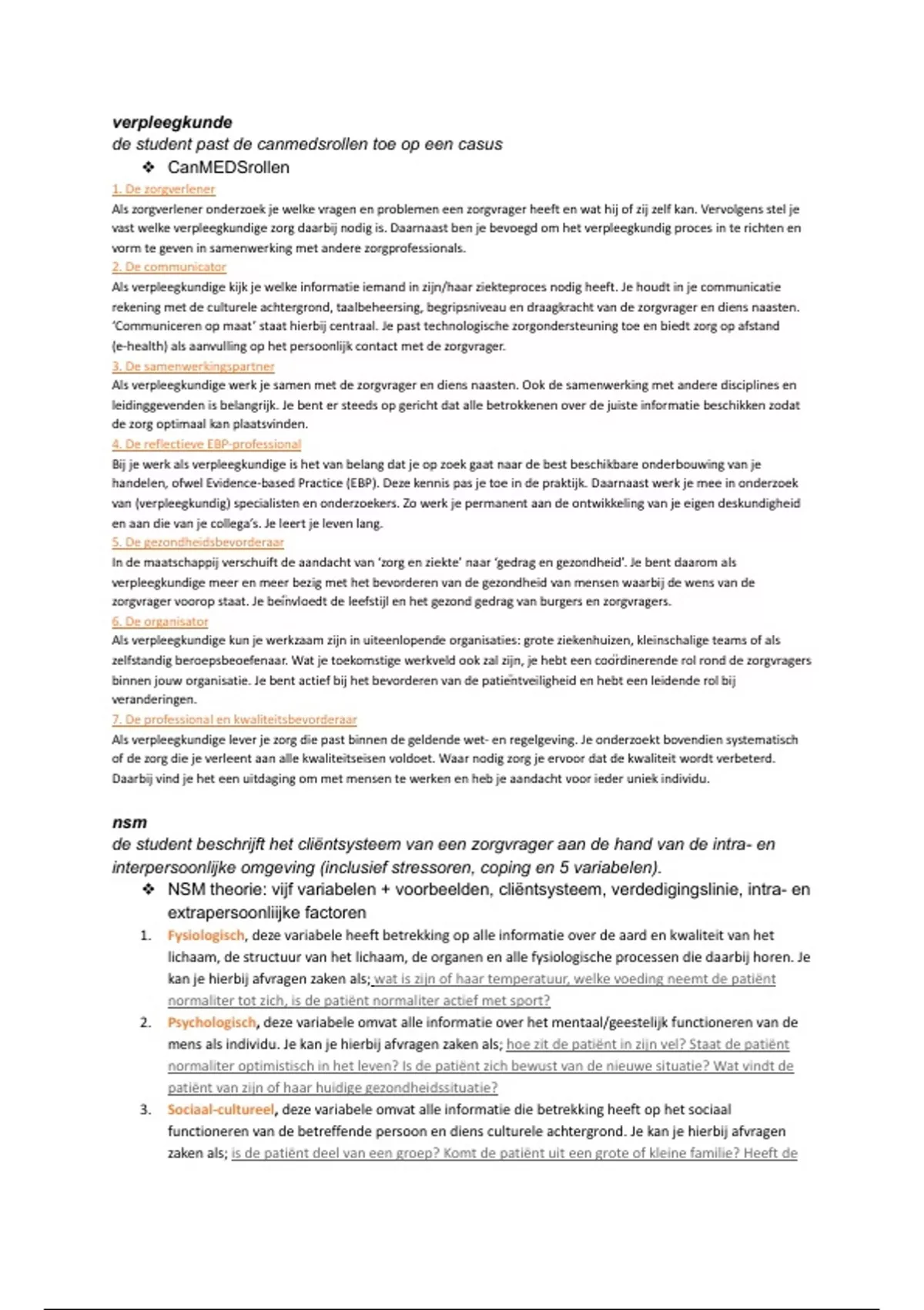 ❖ NSM theorie: vijf variabelen + voorbeelden, cliëntsysteem, verdedigingslinie, intra- en