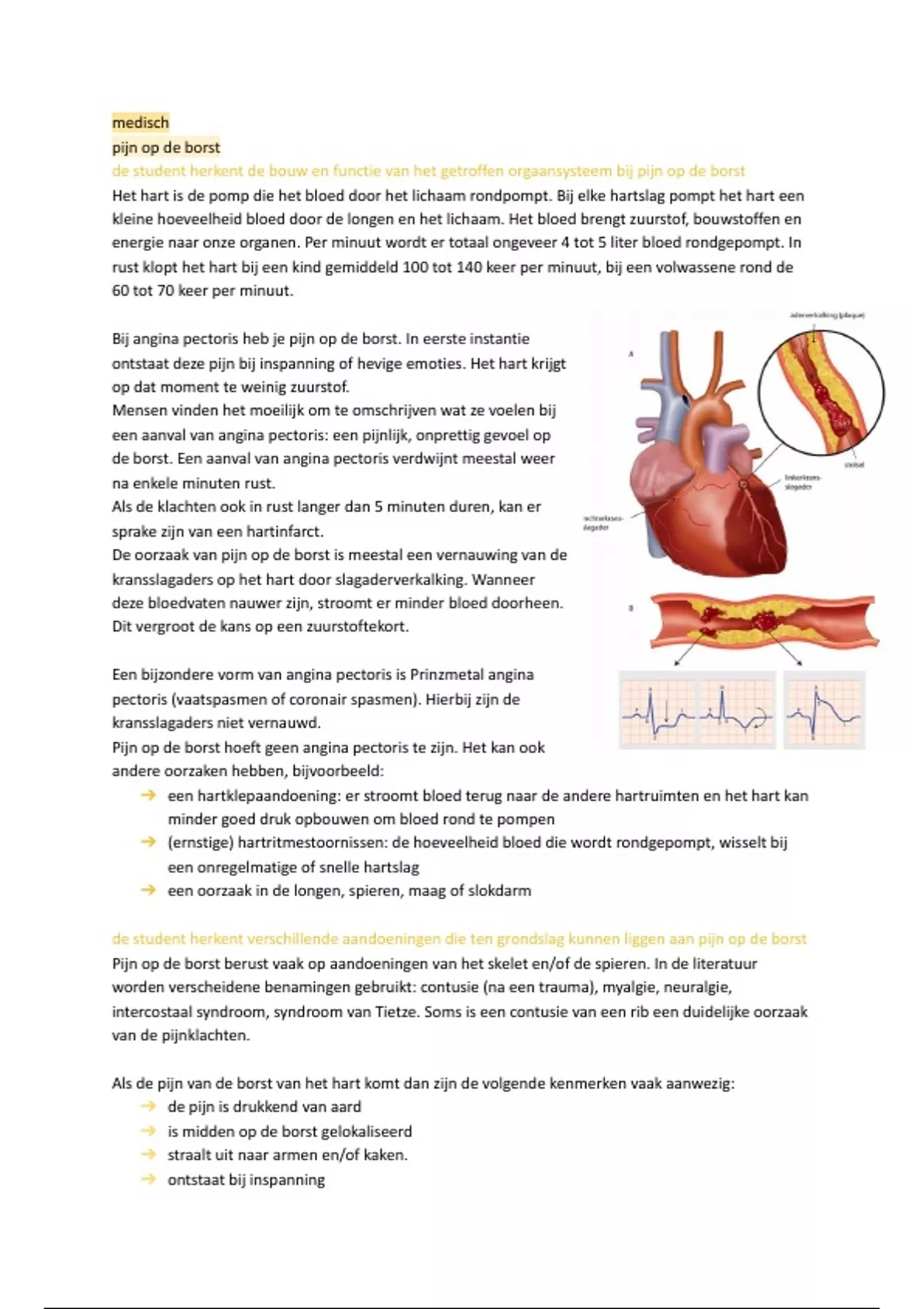 de student herkent de bouw en functie van het getroffen orgaansysteem bij pijn op de borst