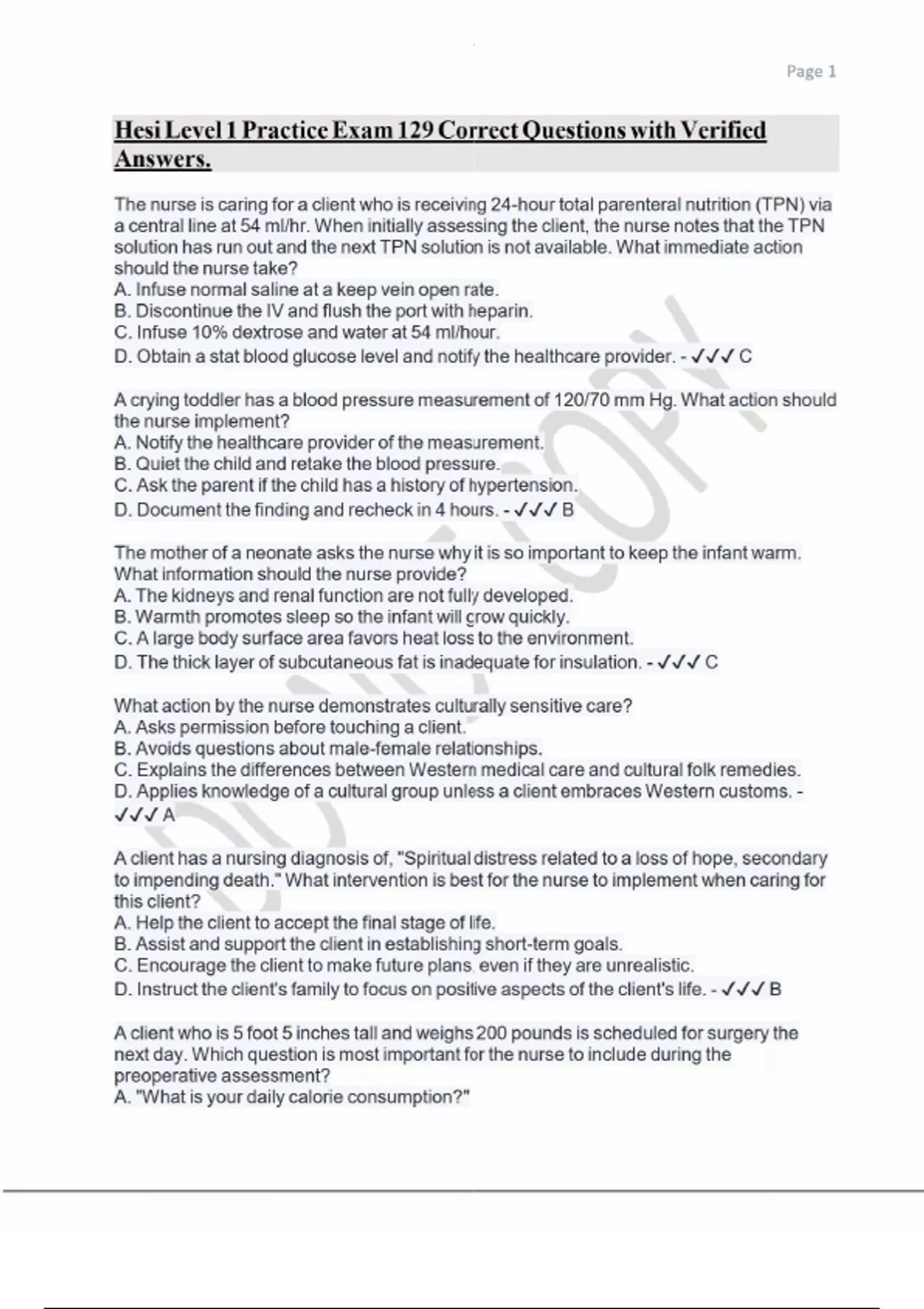 Hesi Level 1 Practice Exam 129 Correct Questions with Verified Answers.