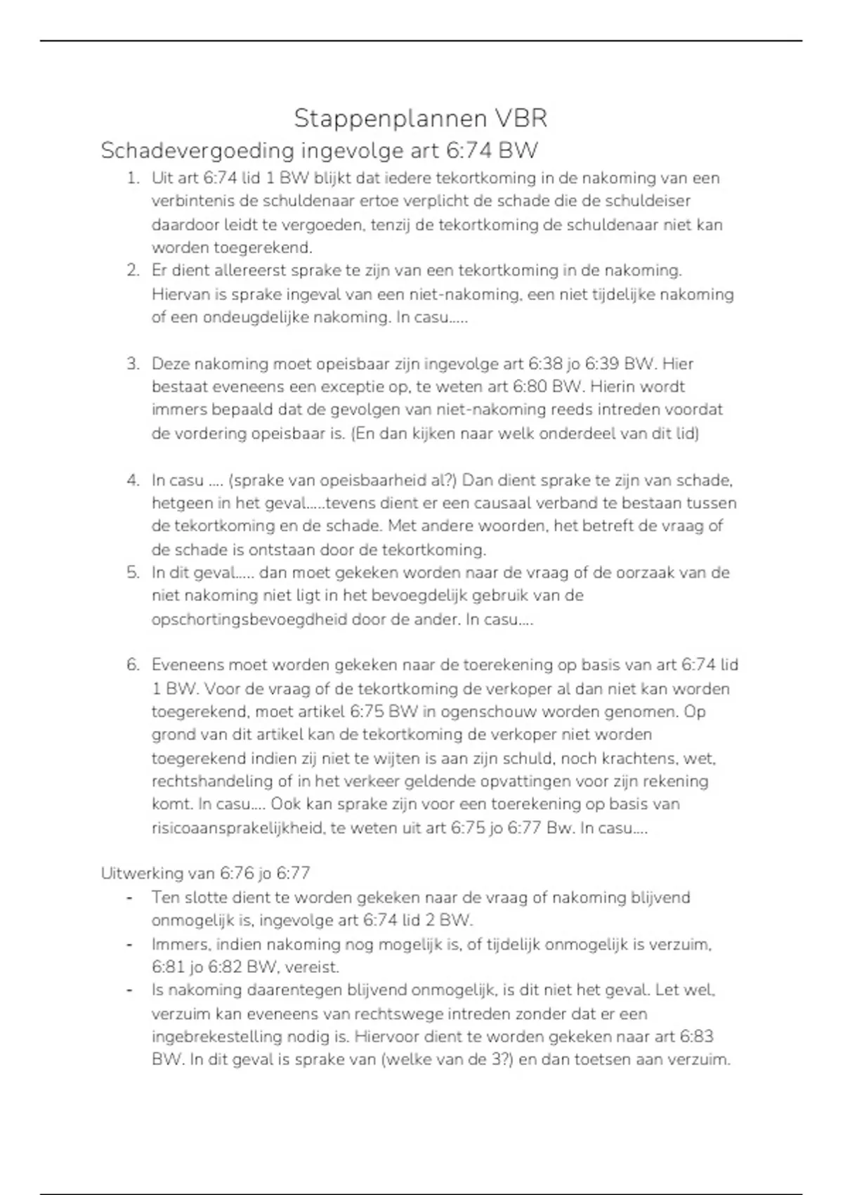BW. In dit geval is sprake van (welke van de 3?) en dan toetsen aan verzuim.