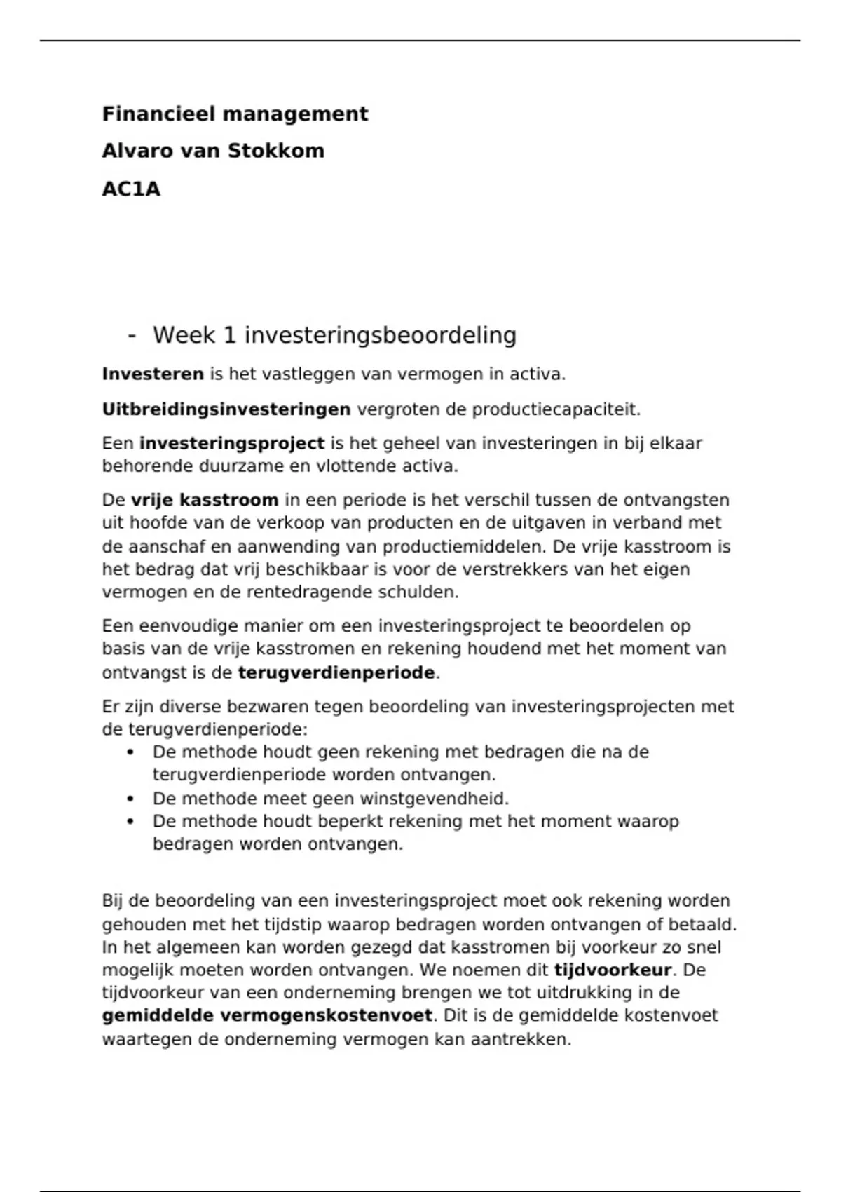 Samenvatting Financieel management