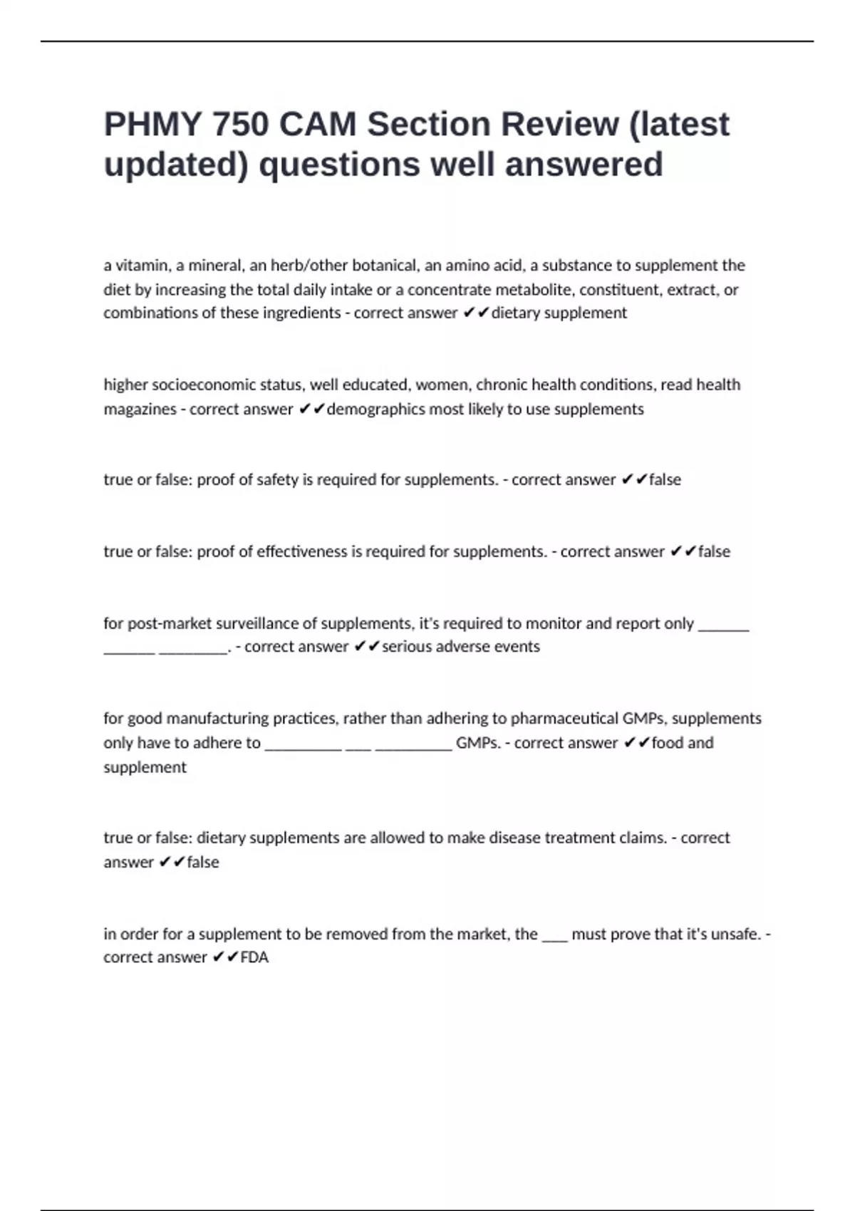true or false: proof of safety is required for supplements. - correct answer ✔✔false