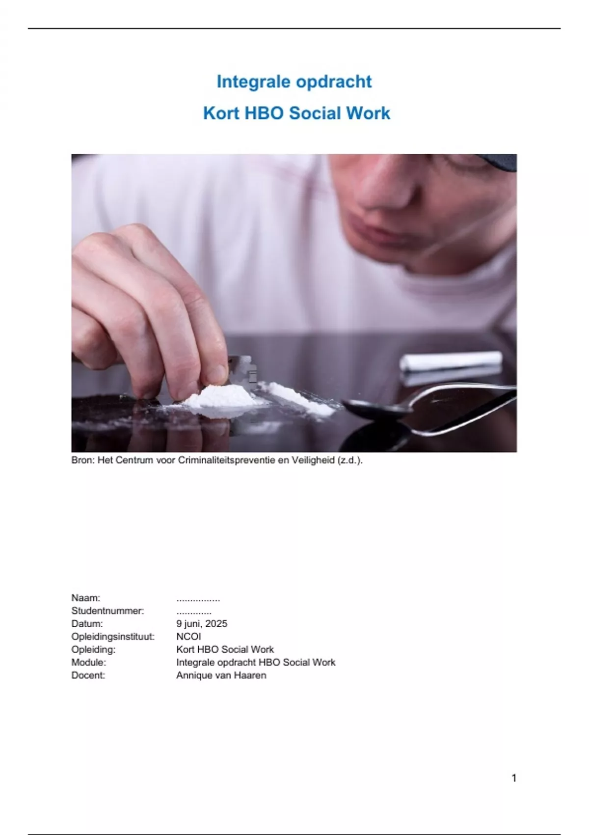 Voorliggend de integrale opdracht kort HBO Social Work fase 1. Deze moduleopdracht is ter