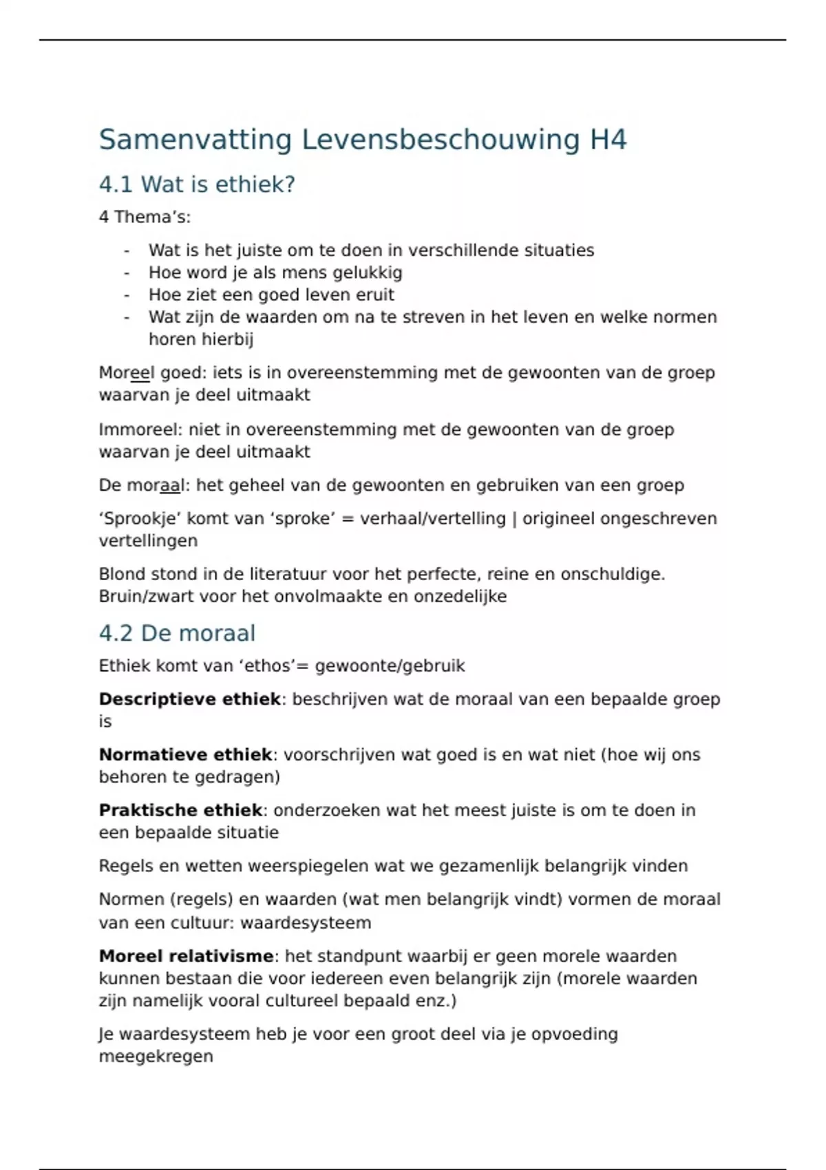 Samenvatting Levensbeschouwing havo/vwo 4 H4 | Ethiek Samenvatting voor havo/vwo 4 De Nassau