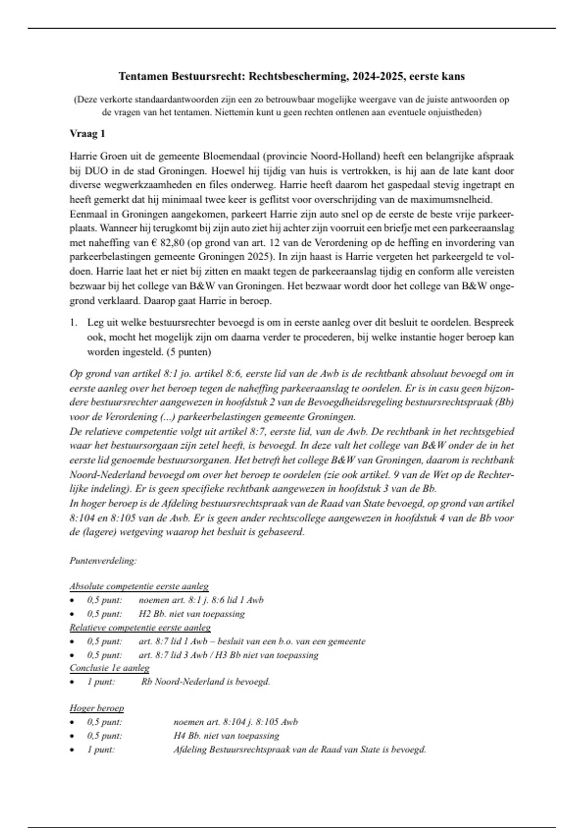 Tentamen Bestuursrecht: Rechtsbescherming, 2024-2025, eerste kans