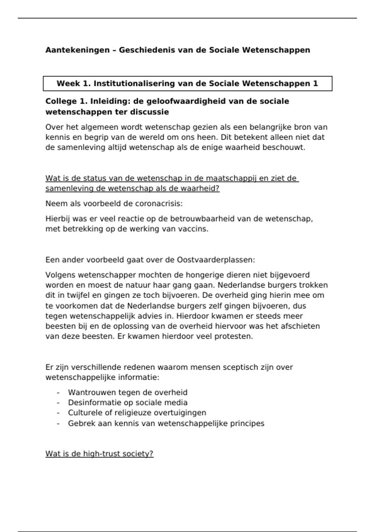 Aantekeningen – Geschiedenis van de Sociale Wetenschappen