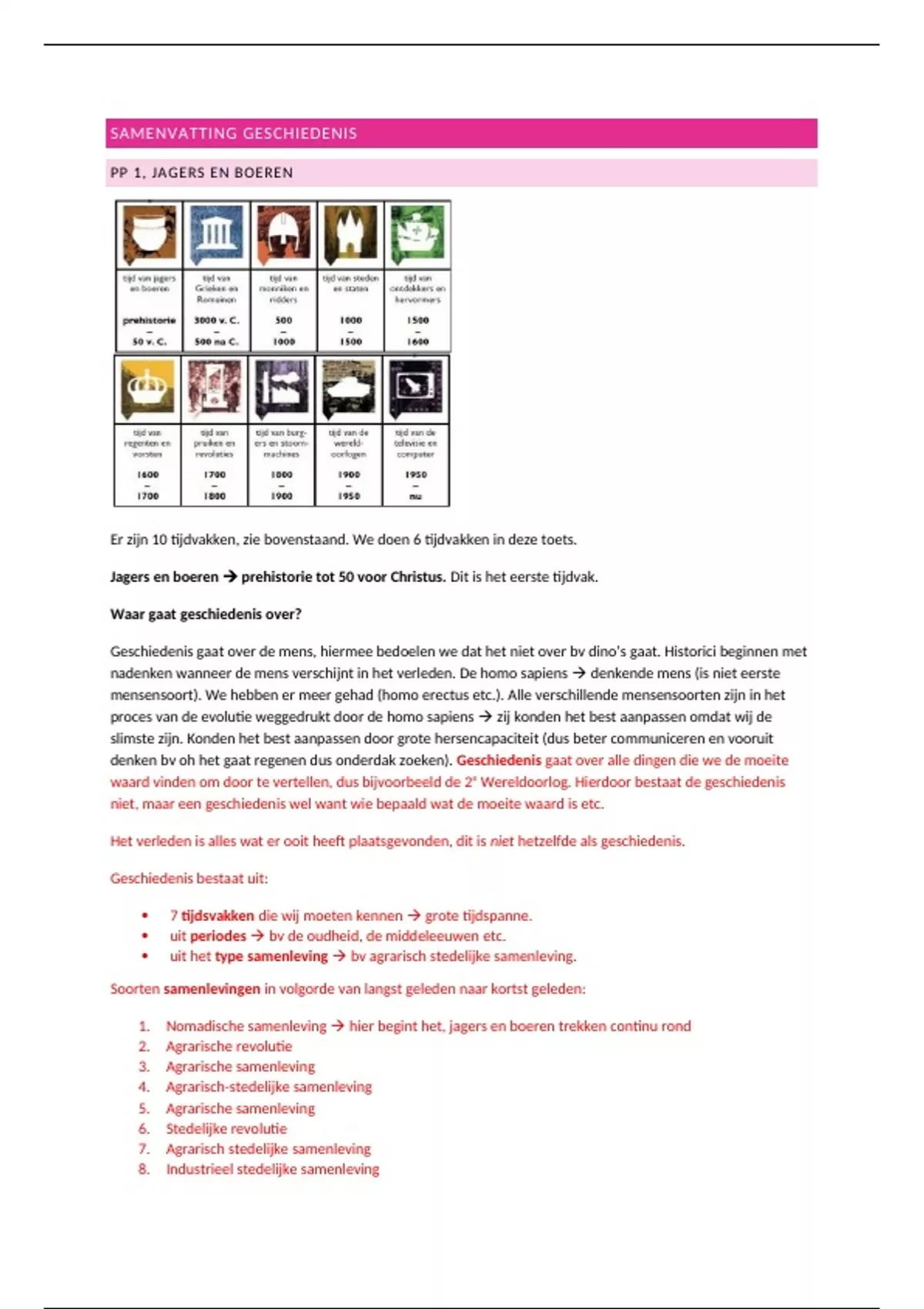 Soorten samenlevingen in volgorde van langst geleden naar kortst geleden: