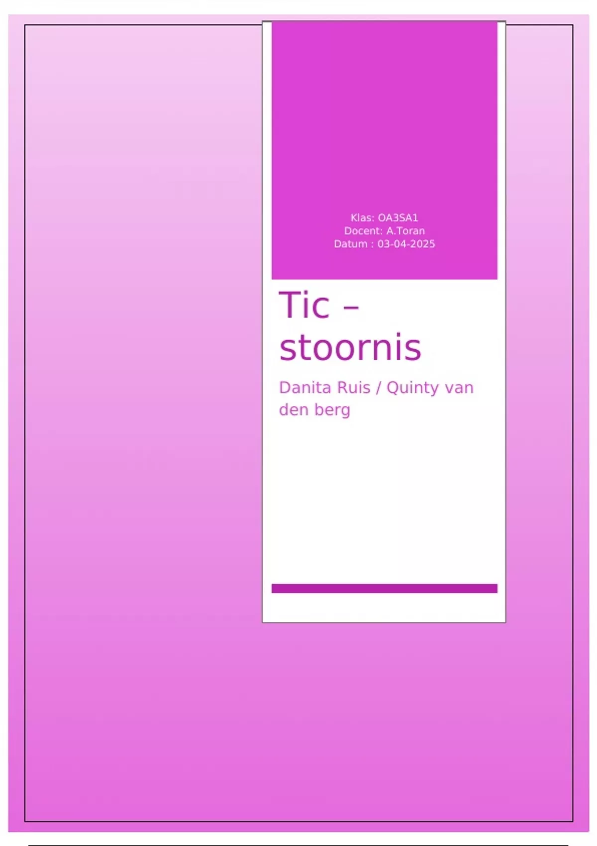Wat houdt een tic stoornis in?............................................................................................ 2