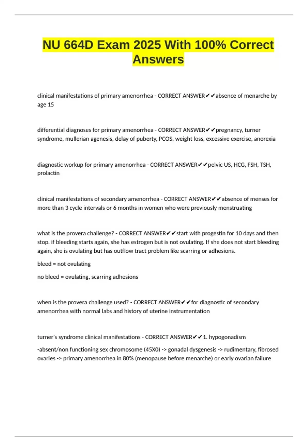 differential diagnoses for primary amenorrhea - CORRECT ANSWER✔✔pregnancy, turner