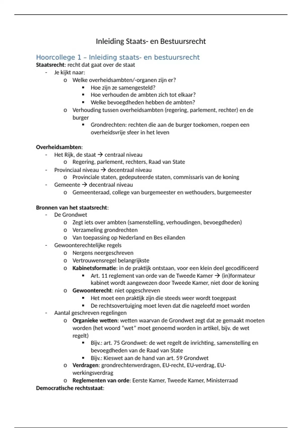 Hoorcollege 1 – Inleiding staats- en bestuursrecht
