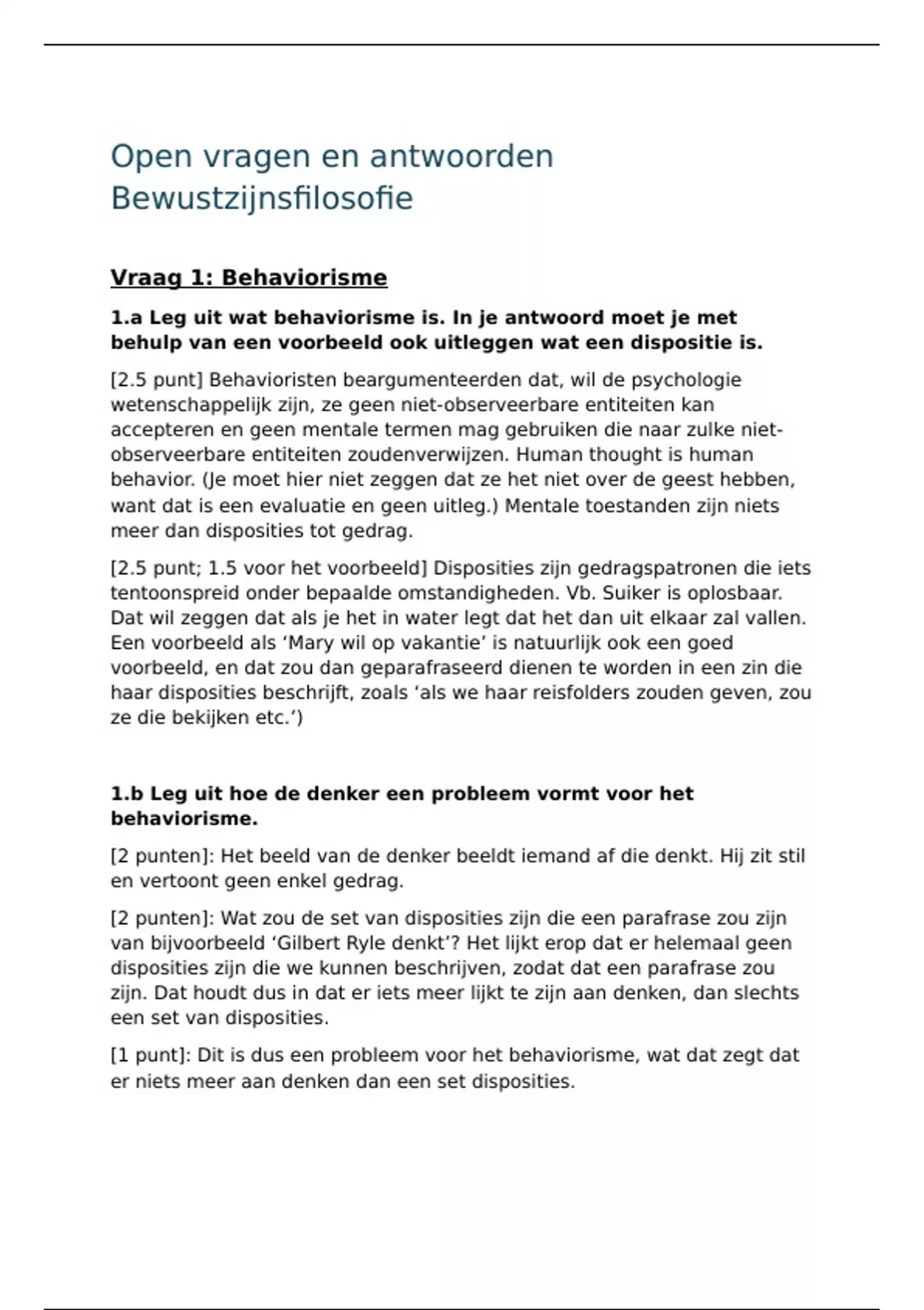 [1 punt]: Dit is dus een probleem voor het behaviorisme, wat dat zegt dat