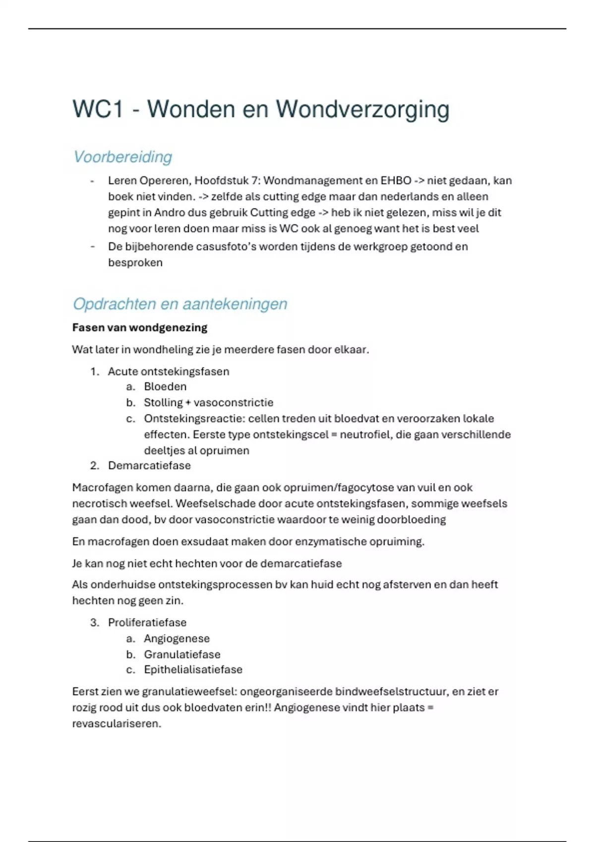 Wat later in wondheling zie je meerdere fasen door elkaar.