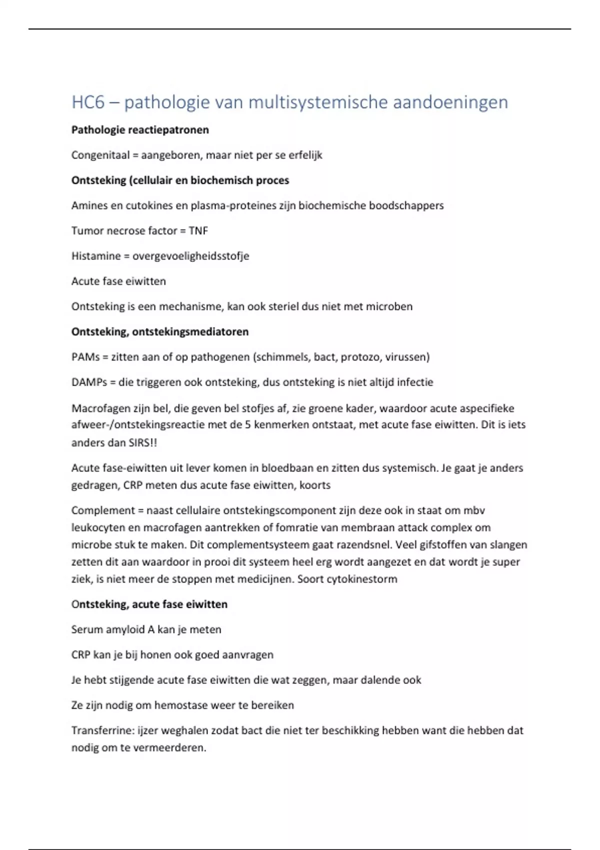 HC6 – pathologie van multisystemische aandoeningen