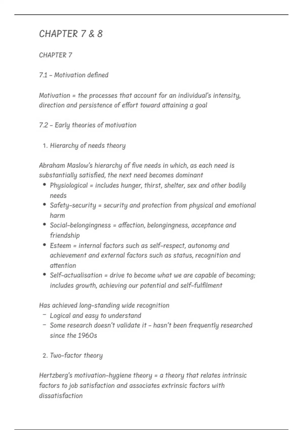 Hertzberg’s motivation-hygiene theory = a theory that relates intrinsic