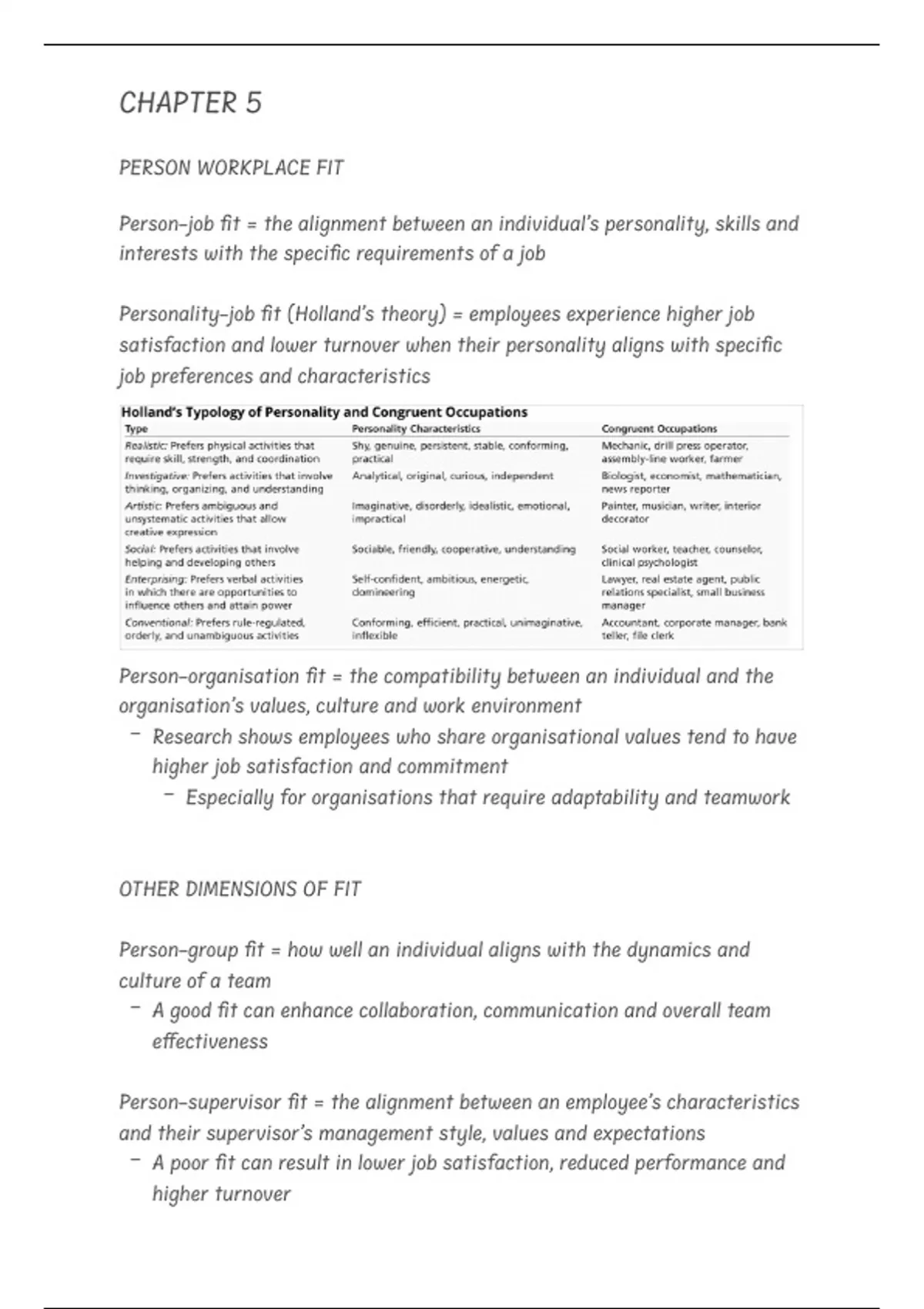 Personality-job fit (Holland’s theory) = employees experience higher job