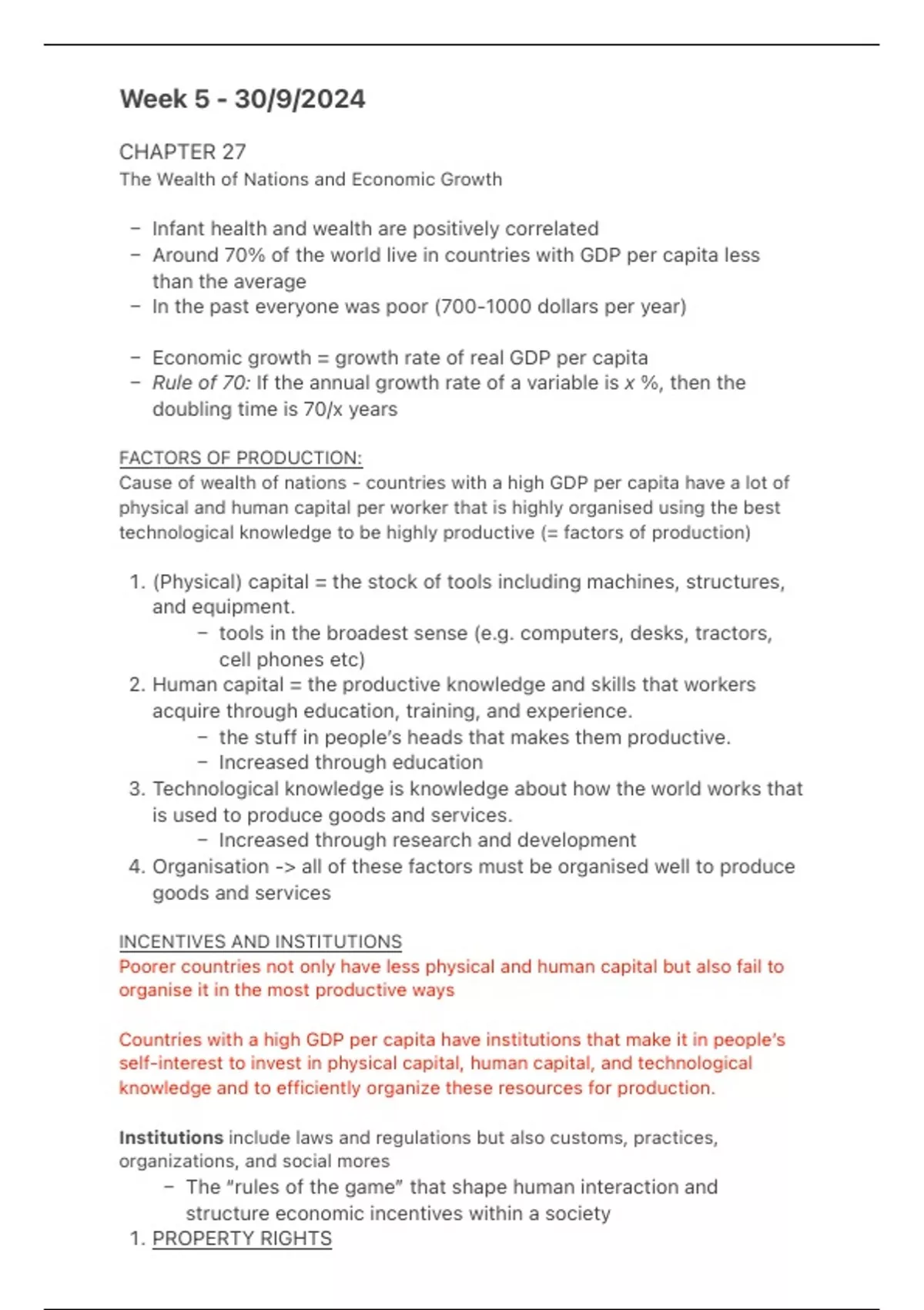 – Economic growth = growth rate of real GDP per capita