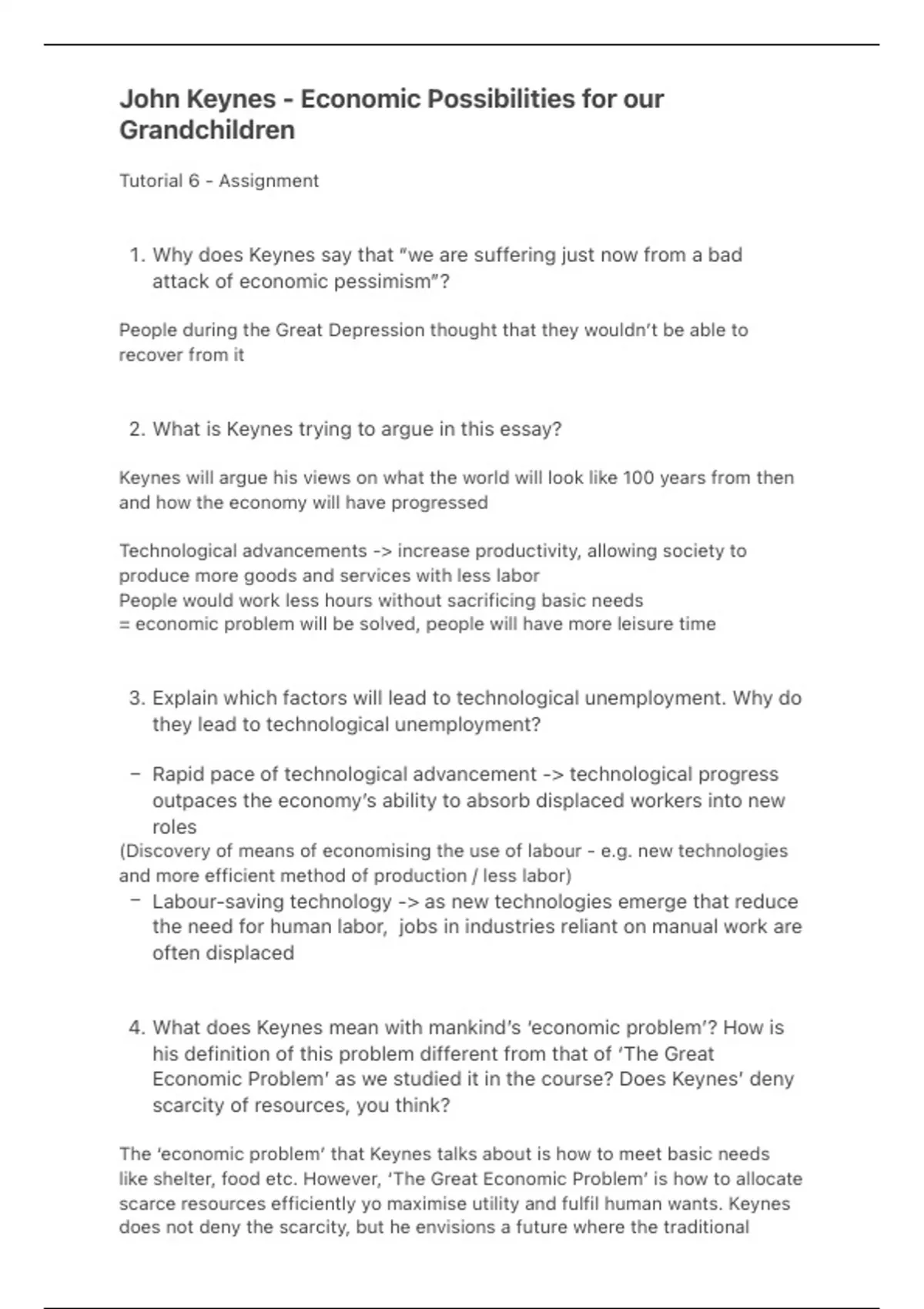 Economic Problem’ as we studied it in the course? Does Keynes’ deny