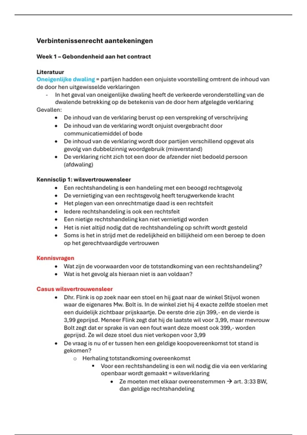 o Herhaling totstandkoming overeenkomst