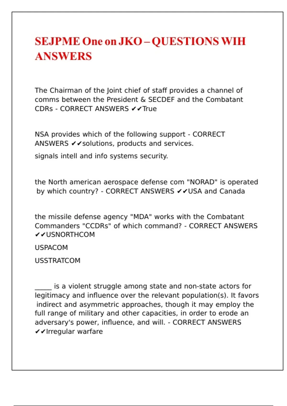 CORRECT ANSWERS ✔✔Combatant CDRs |\ |\ |\