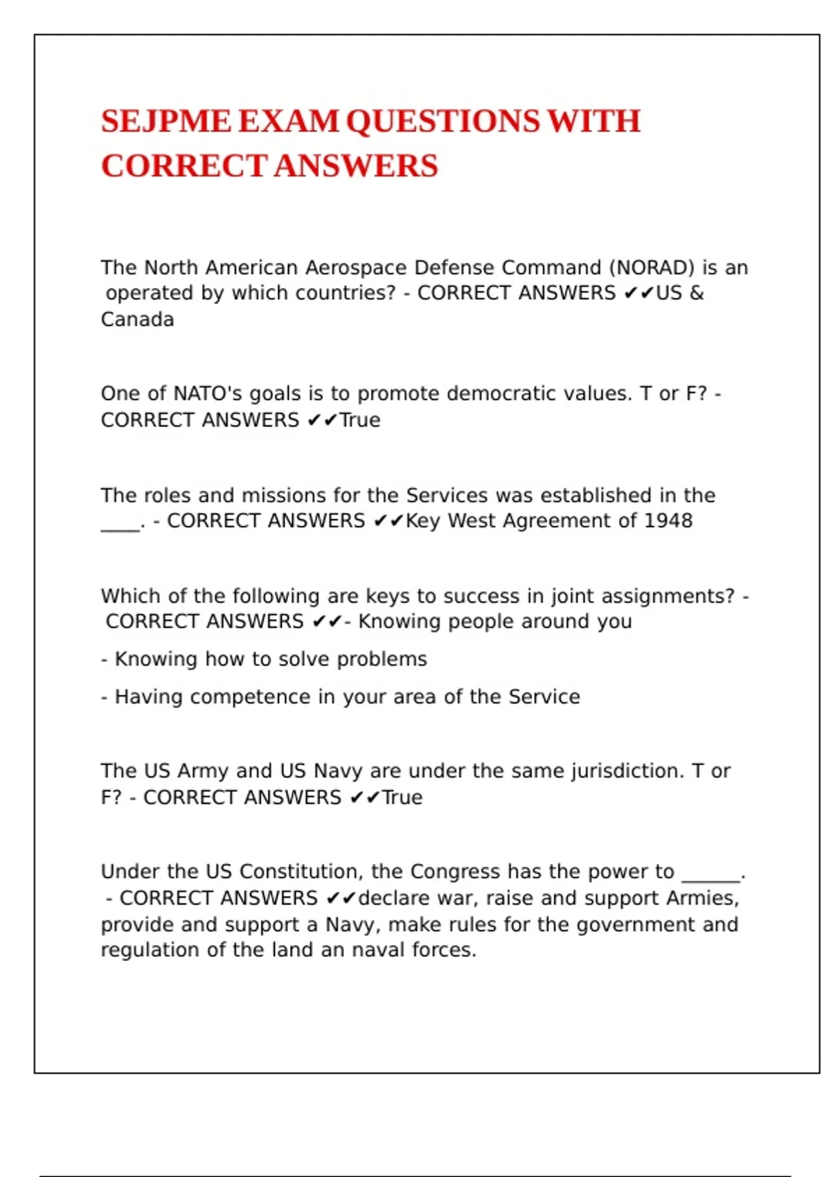CORRECT ANSWERS |\
