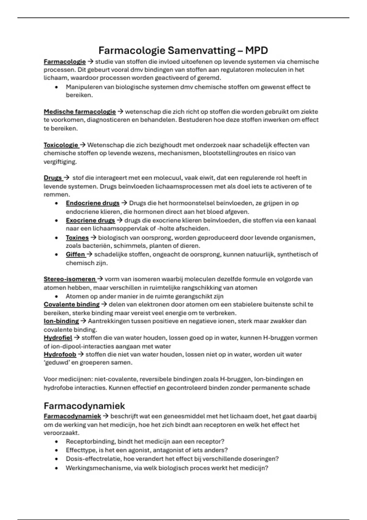 Farmacologie Samenvatting – MPD