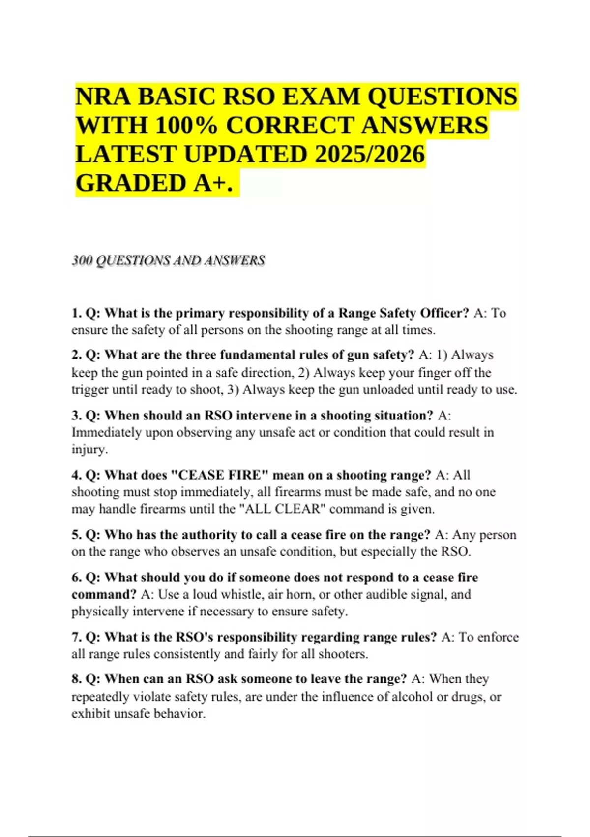 7. Q: What is the RSO's responsibility regarding range rules? A: To enforce