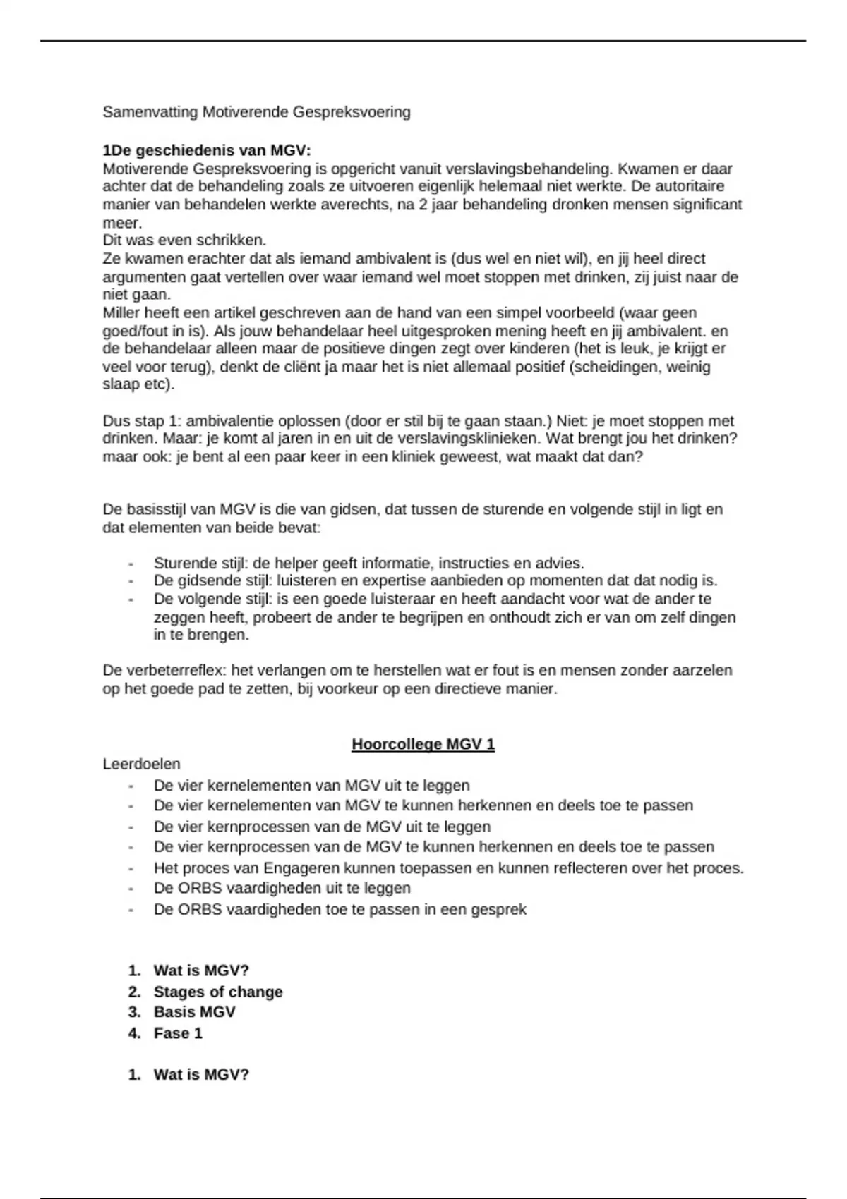 ALGEMENE DOEL MGV: mensen helpen hun ambivalentie op te lossen en