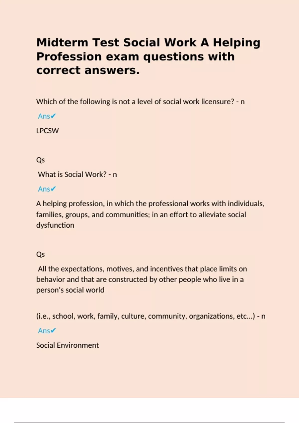 Which of the following statements best describe social work as it