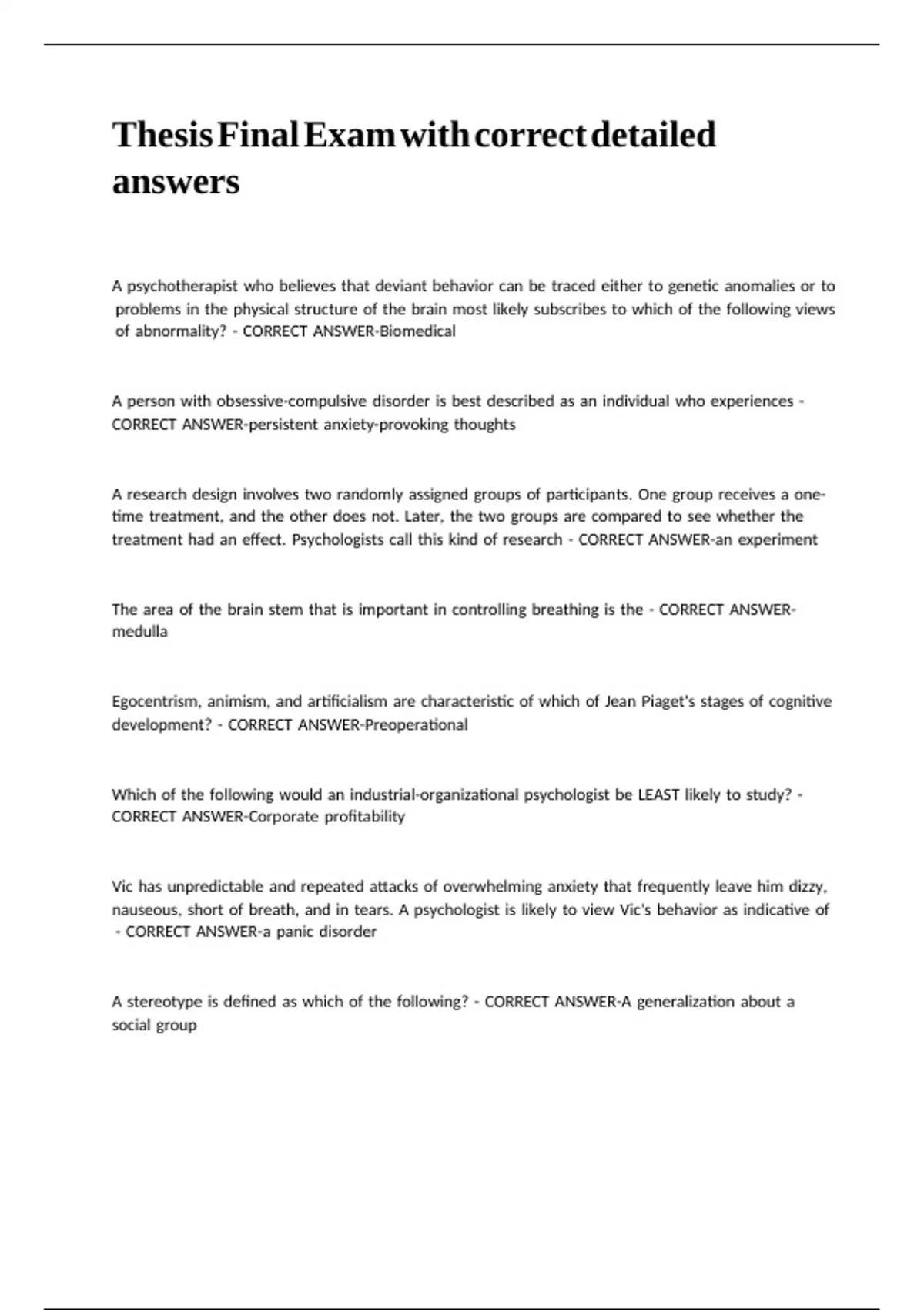 Thesis Final Exam with correct detailed answers.