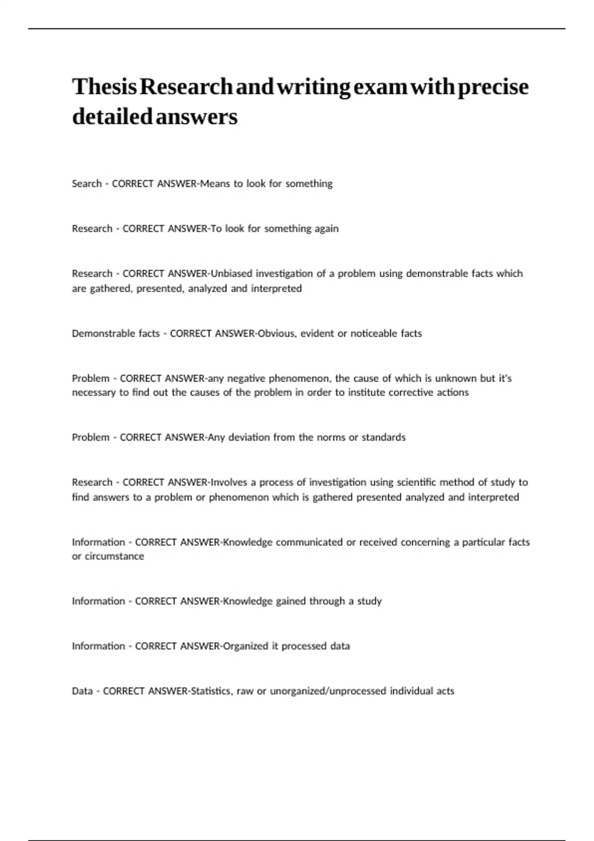 Research |- |CORRECT |ANSWER-Unbiased |investigation |of |a |problem |using |demonstrable |facts |which |