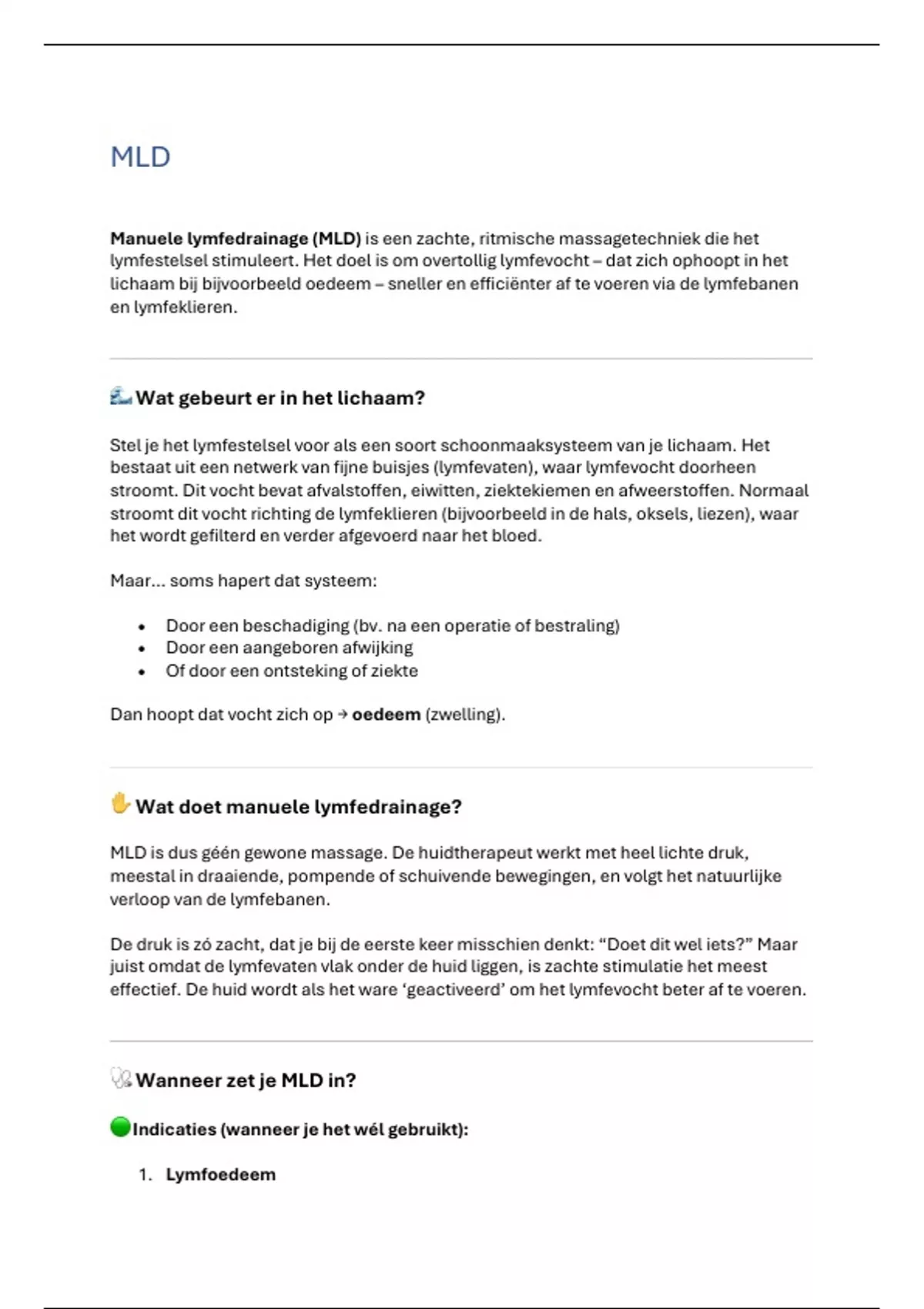 Manuele lymfedrainage (MLD) is een zachte, ritmische massagetechniek die het