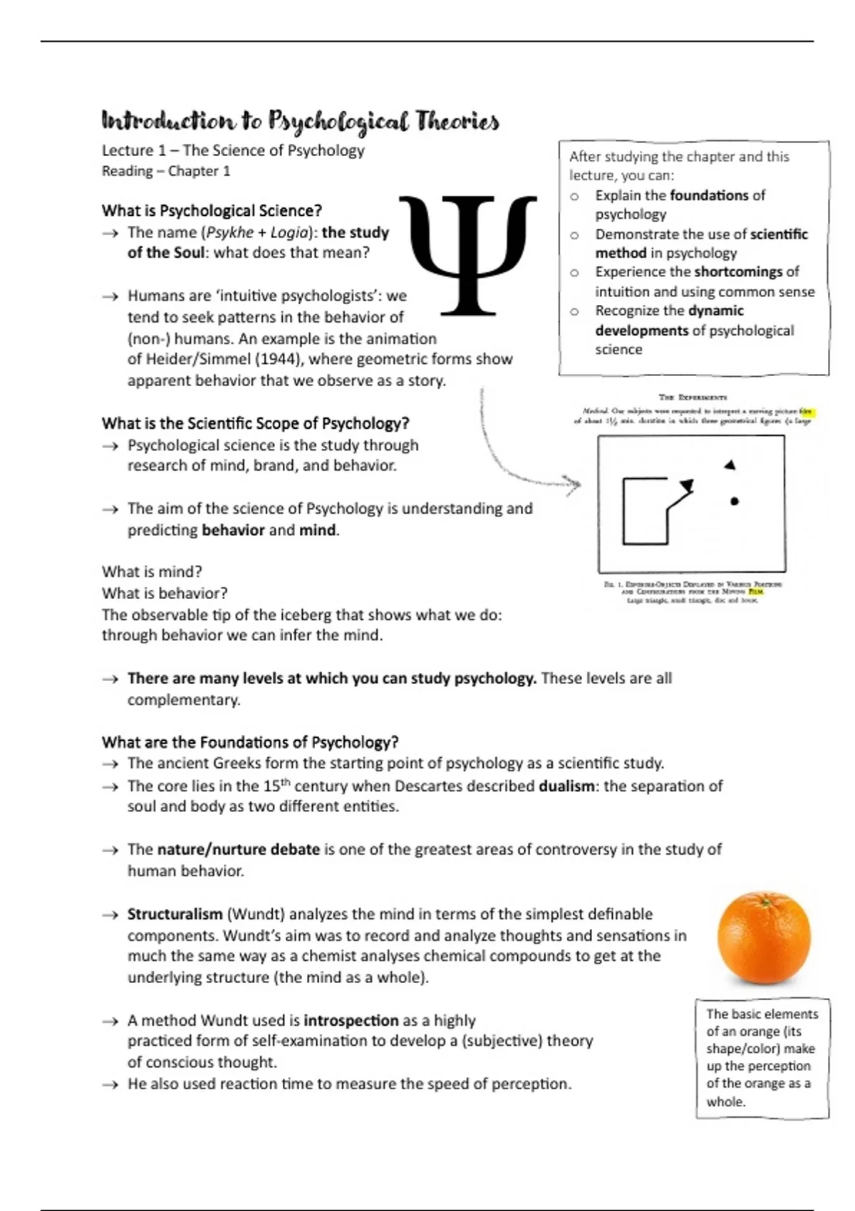 Samenvatting - Introduction to Psychological Theories (PSB3E-M22)