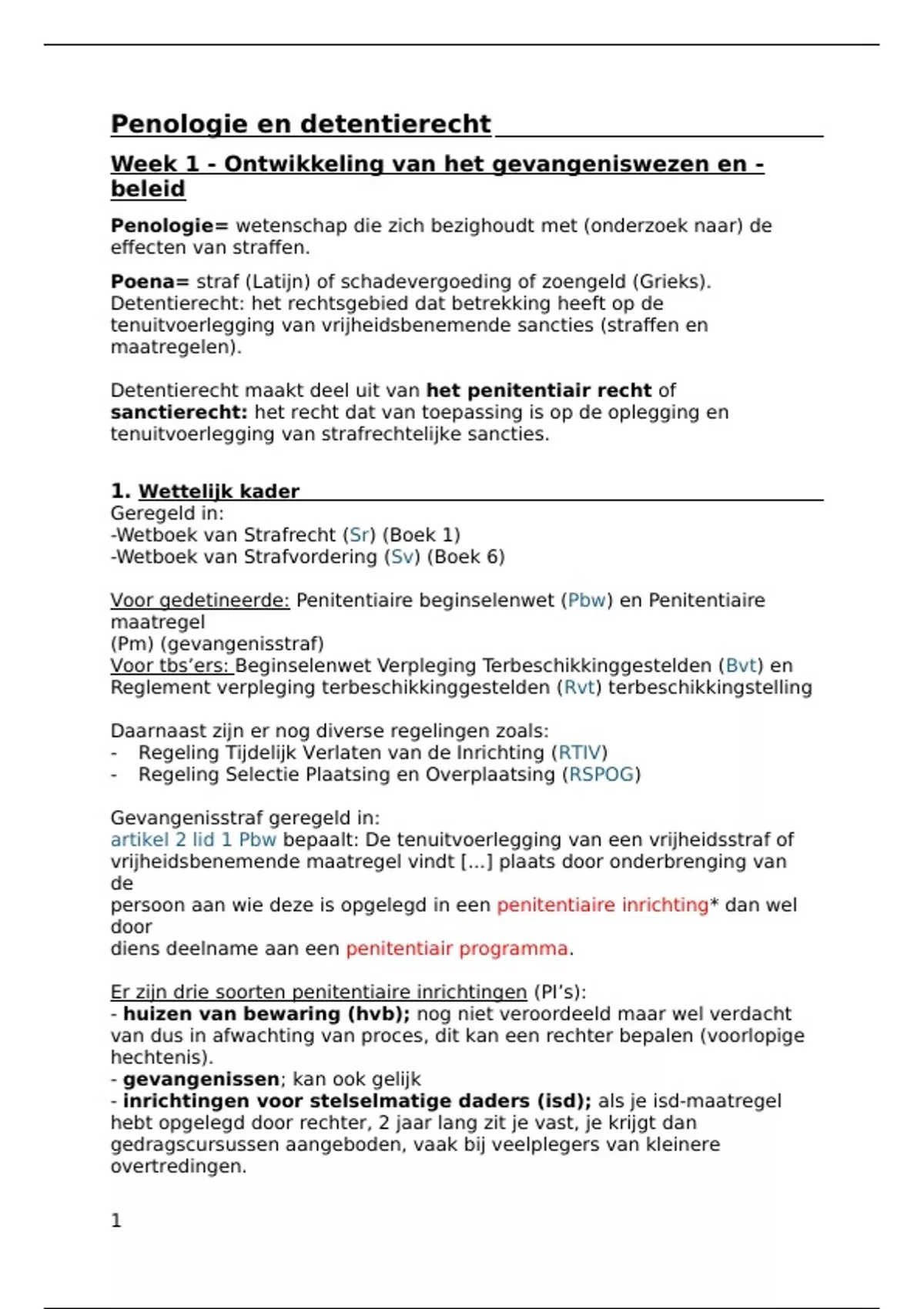 Penologie= wetenschap die zich bezighoudt met (onderzoek naar) de