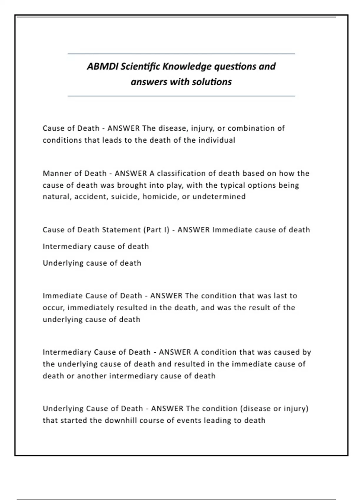Underlying Cause of Death - ANSWER The condition (disease or injury)