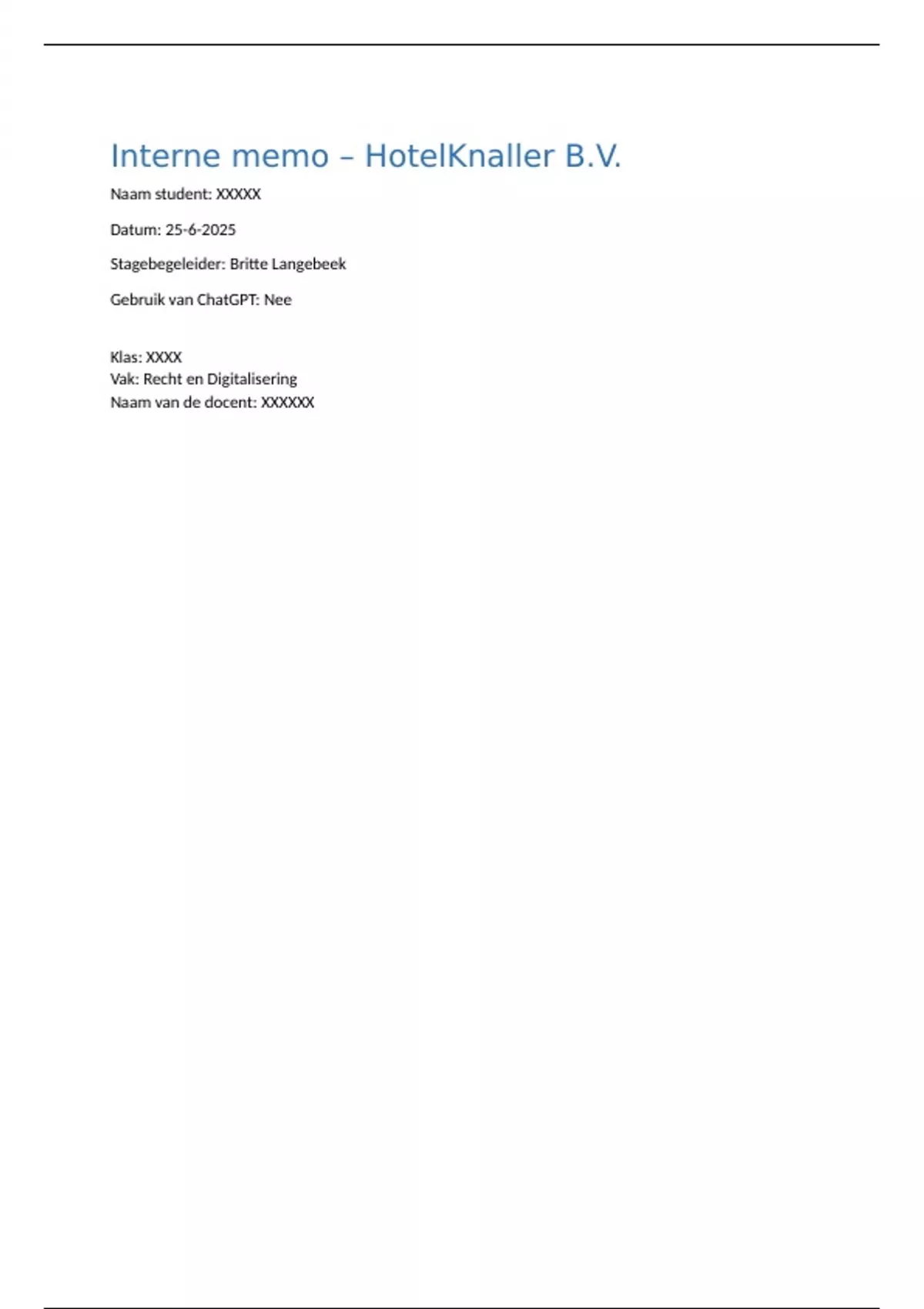 Interne memo – HotelKnaller B.V.