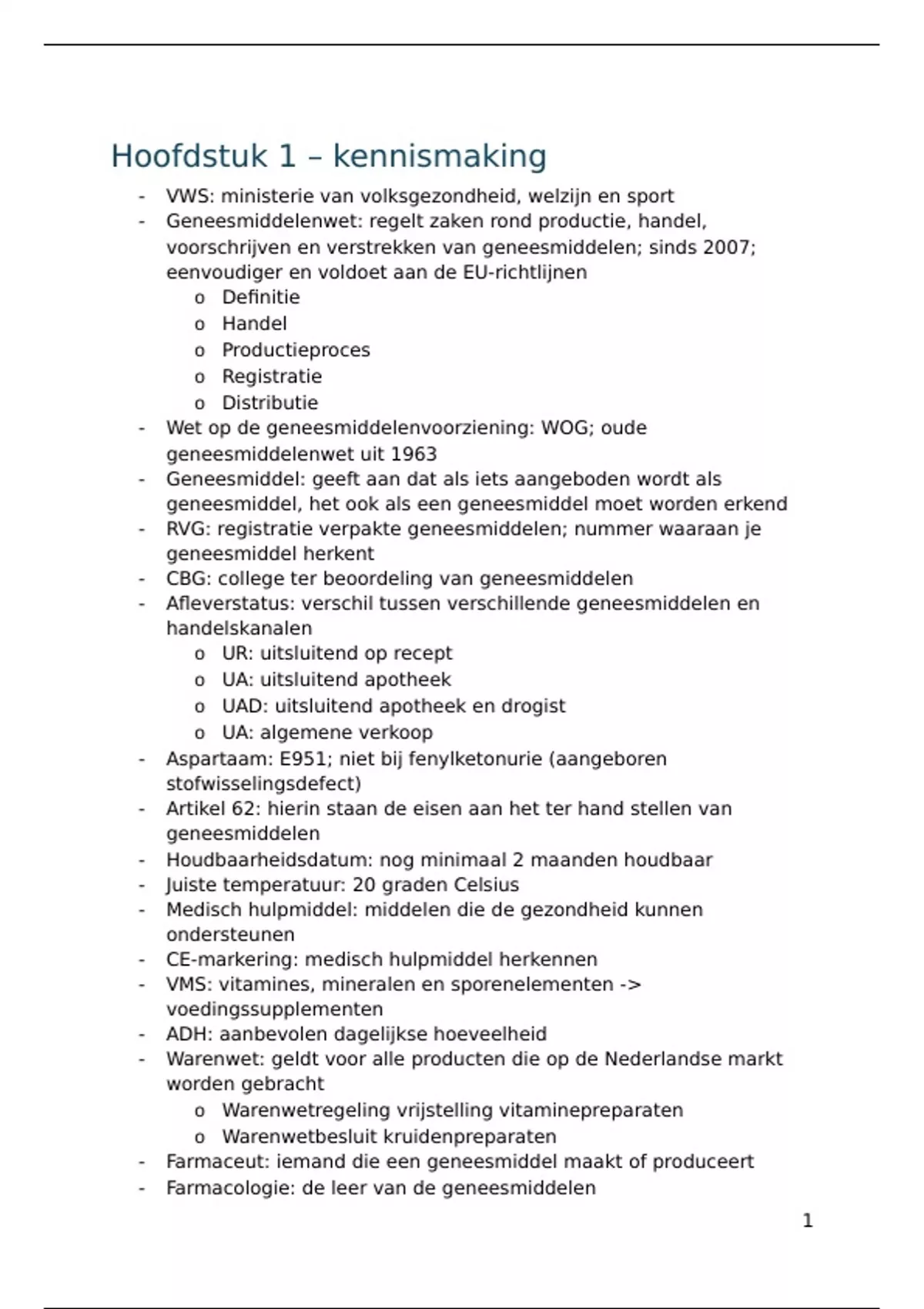 - Geneesmiddelenwet: regelt zaken rond productie, handel,