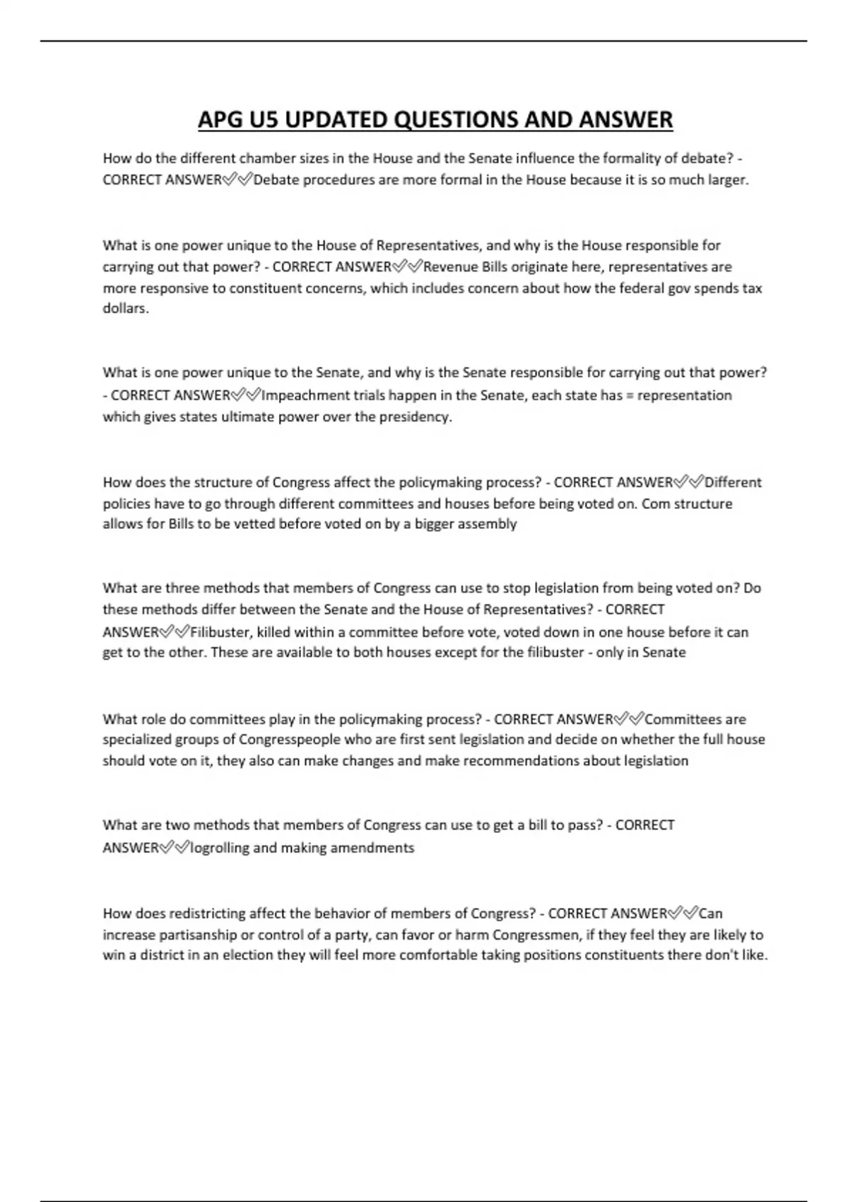How does the structure of Congress affect the policymaking process? - CORRECT ANSWER✅✅Different