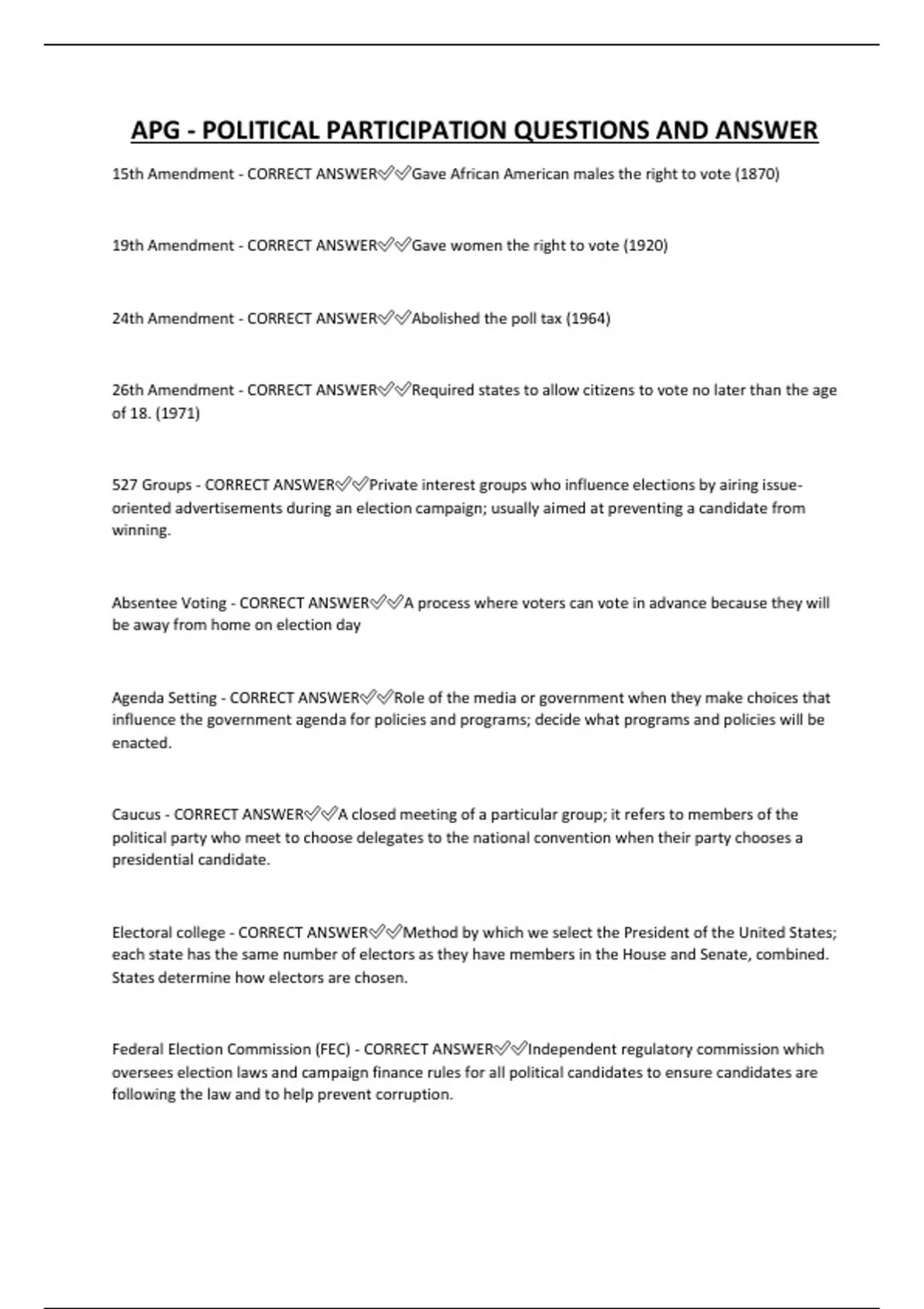 APG - POLITICAL PARTICIPATION QUESTIONS AND ANSWER