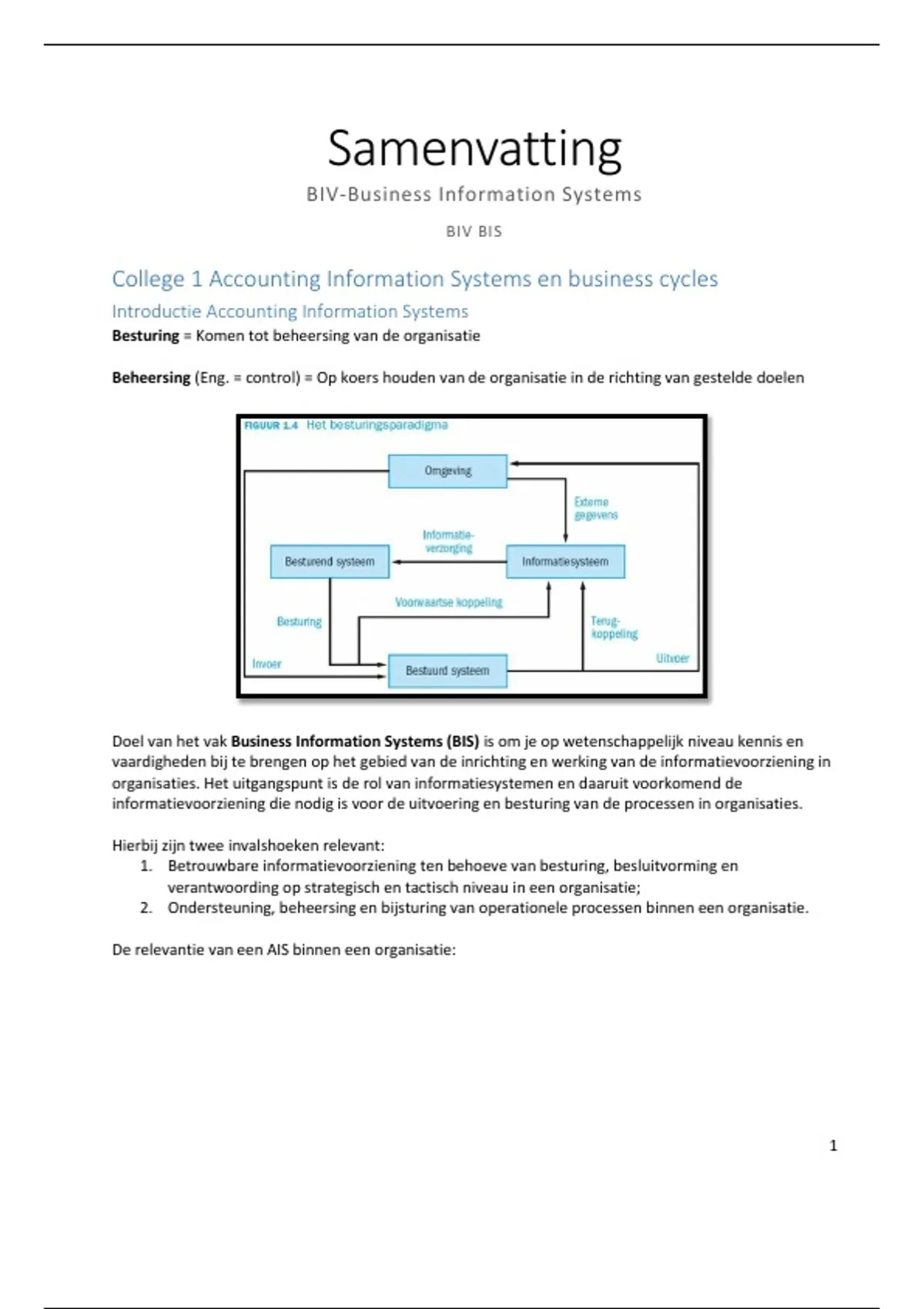 Samenvatting - BIV BIS