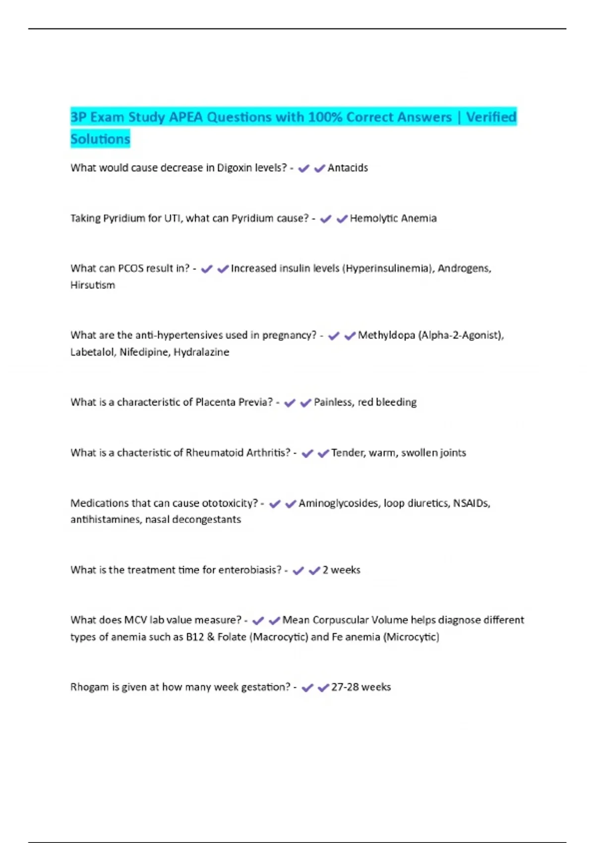 3P Exam Study APEA Questions with 100% Correct Answers | Verified Solutions