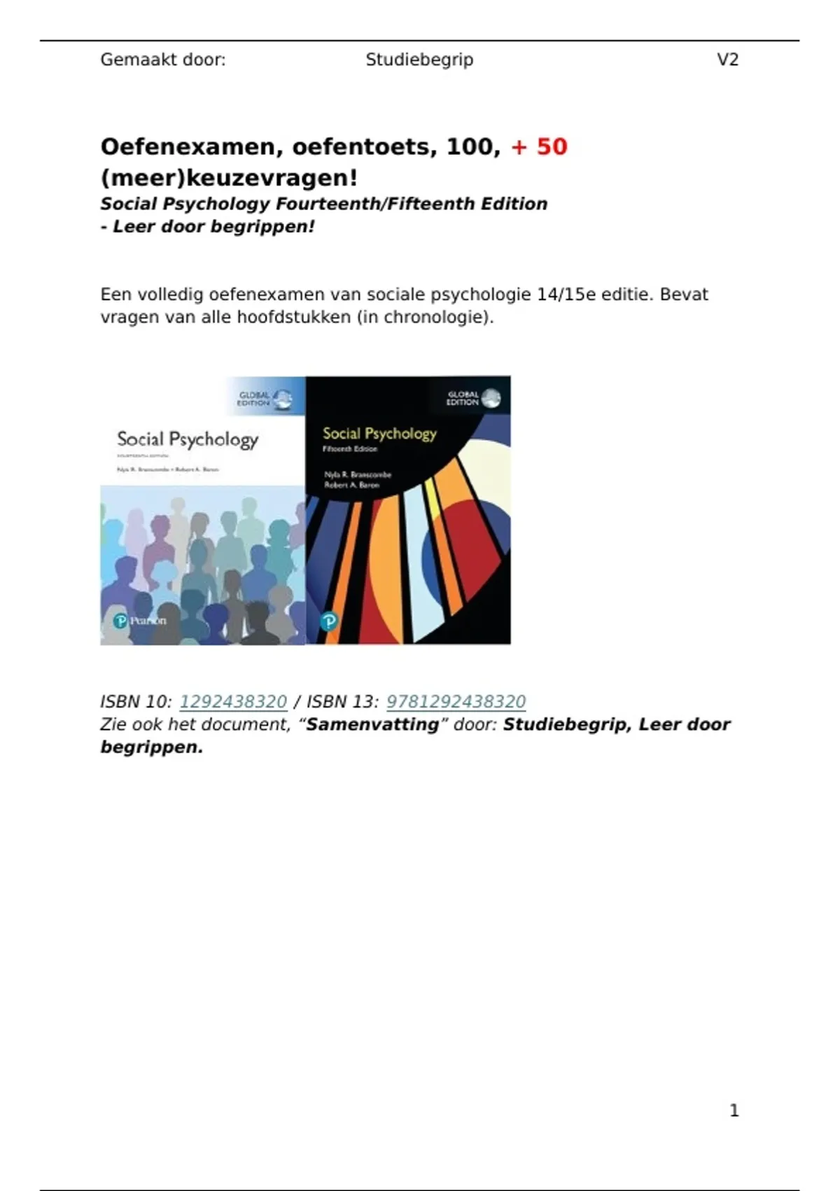 Een volledig oefenexamen van sociale psychologie 14/15e editie. Bevat