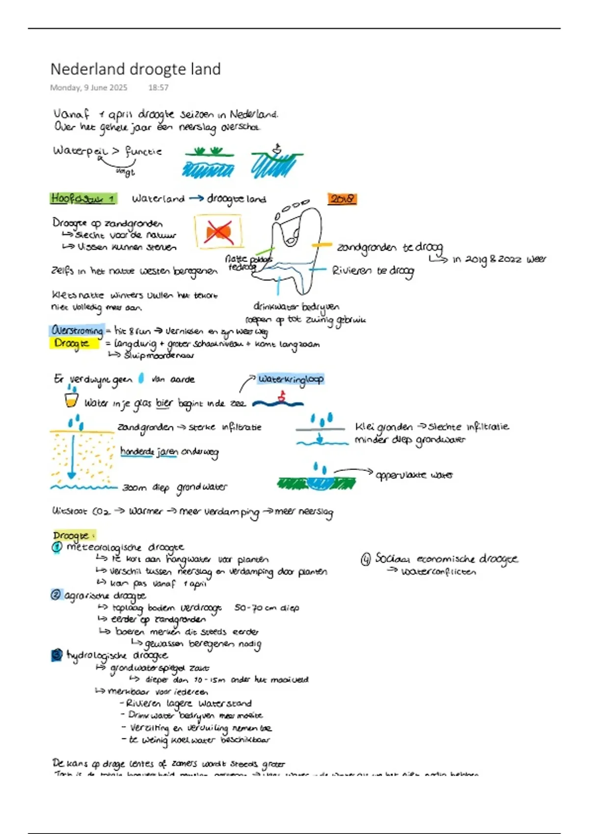 Samenvatting Nederland Droogteland, niet volledig wel een groot deel